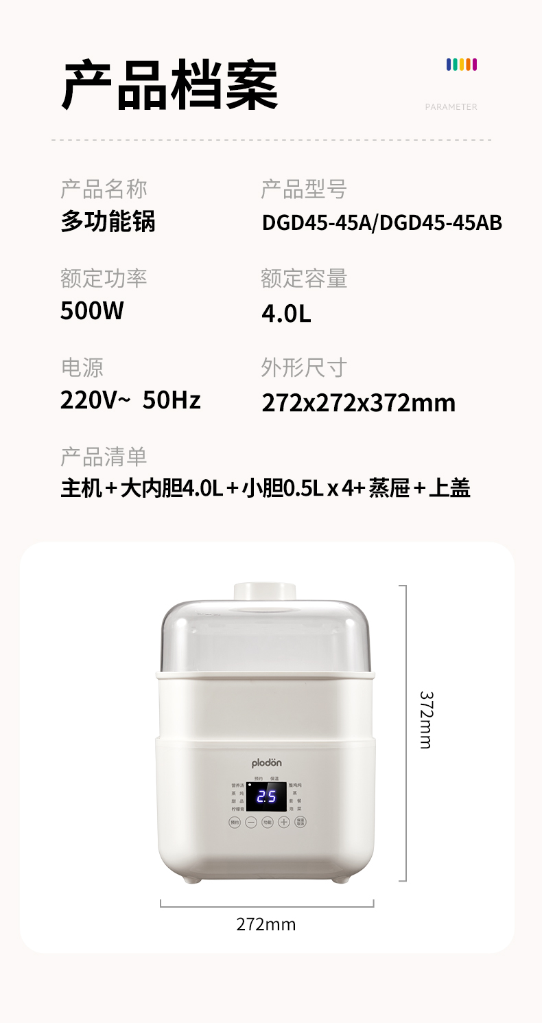 浦利顿多功能隔水炖PLD-DGD45-45A