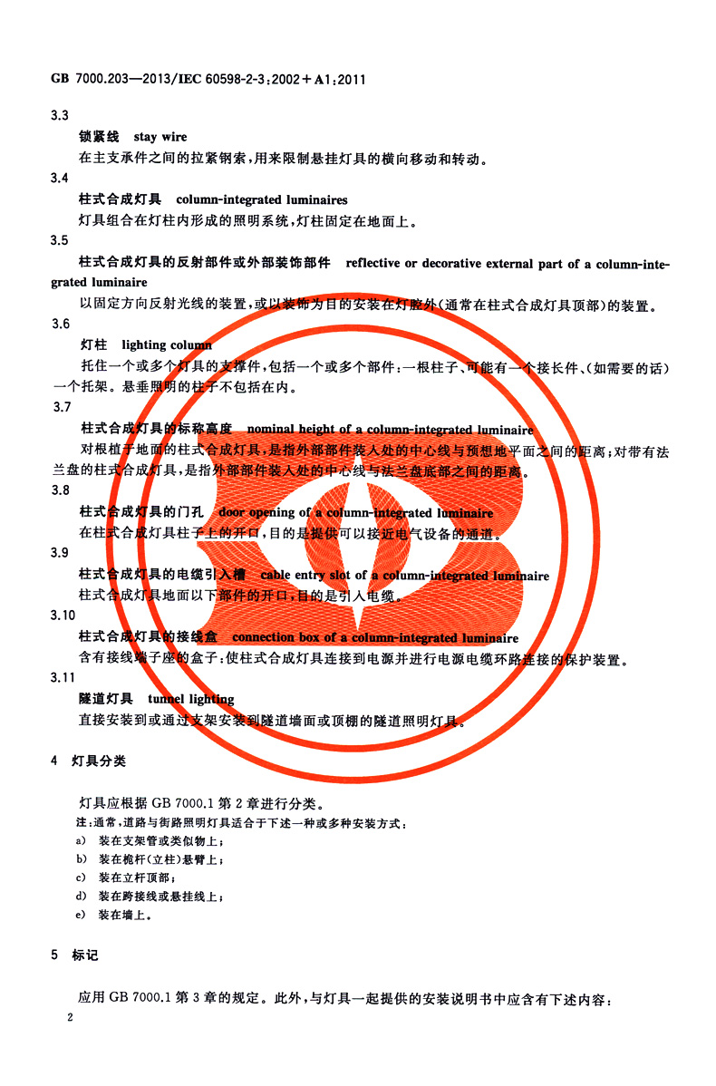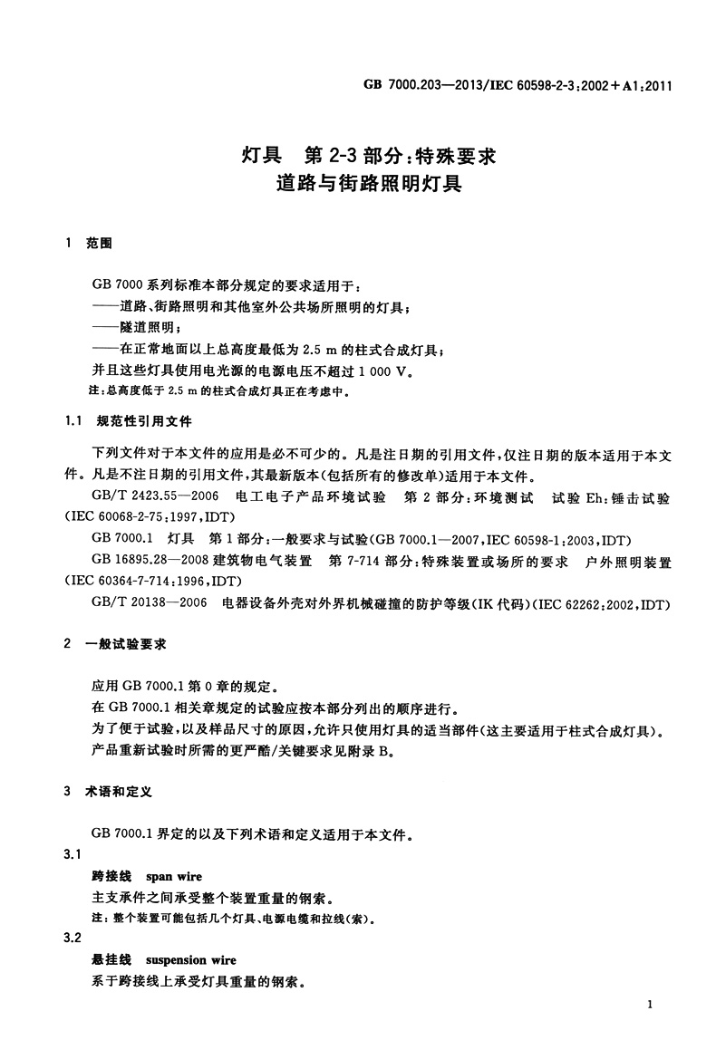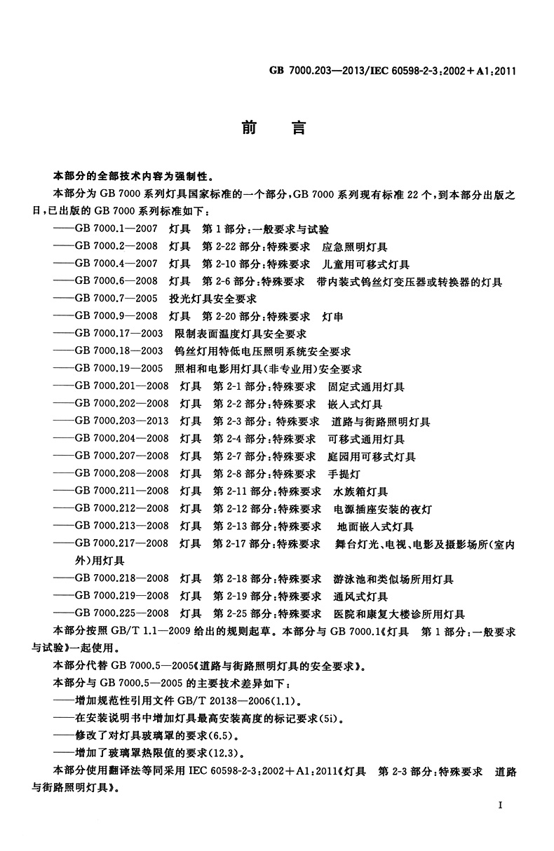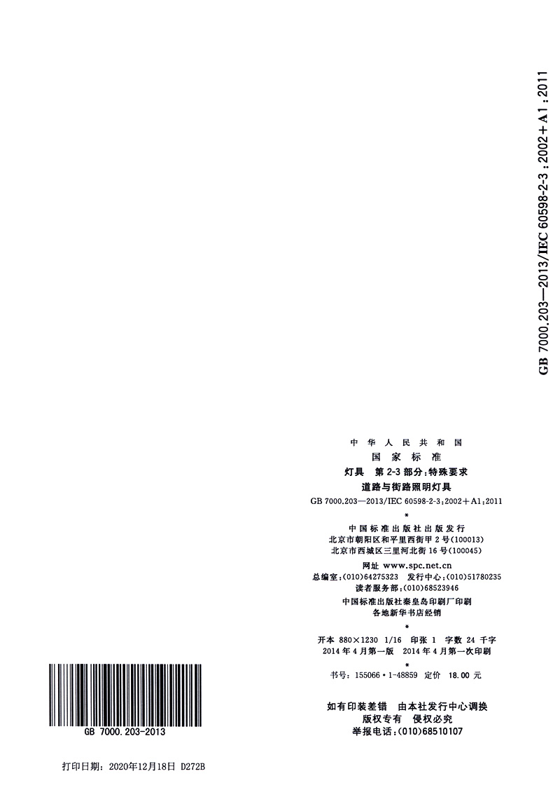 书名:速印不退 GB 7000.203-2013灯具 第2-3部分:特殊要求 道路与街路照明灯具