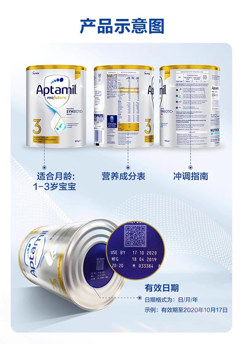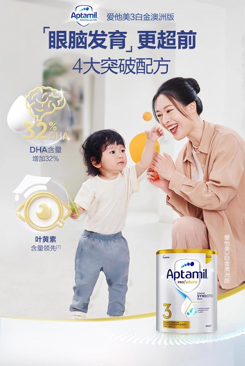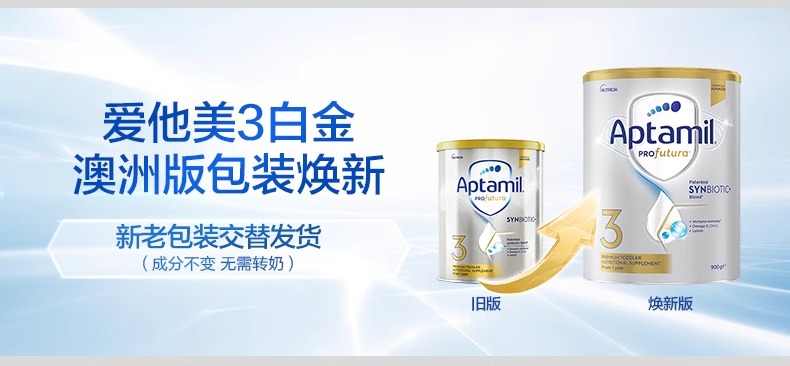 【中欧班列精选】澳洲版爱他美白金全新升级加量DHA叶黄素配方奶粉3段900g1岁-3岁
