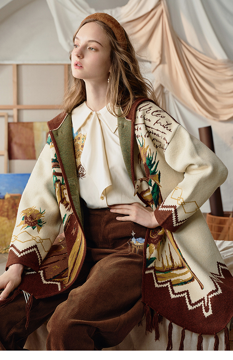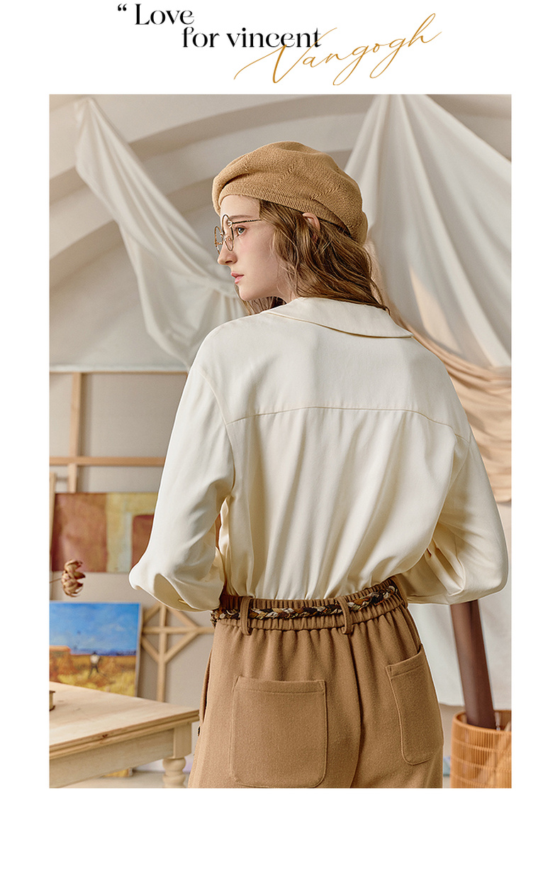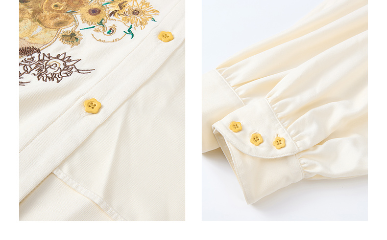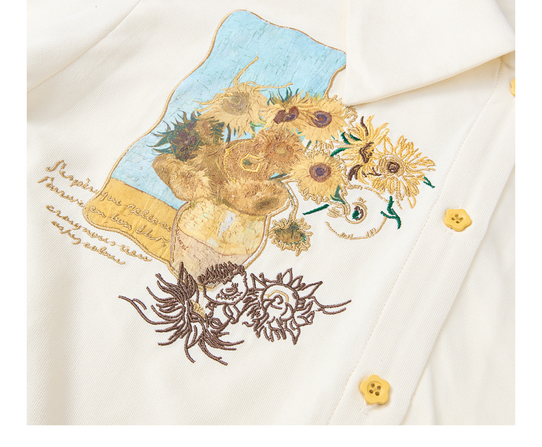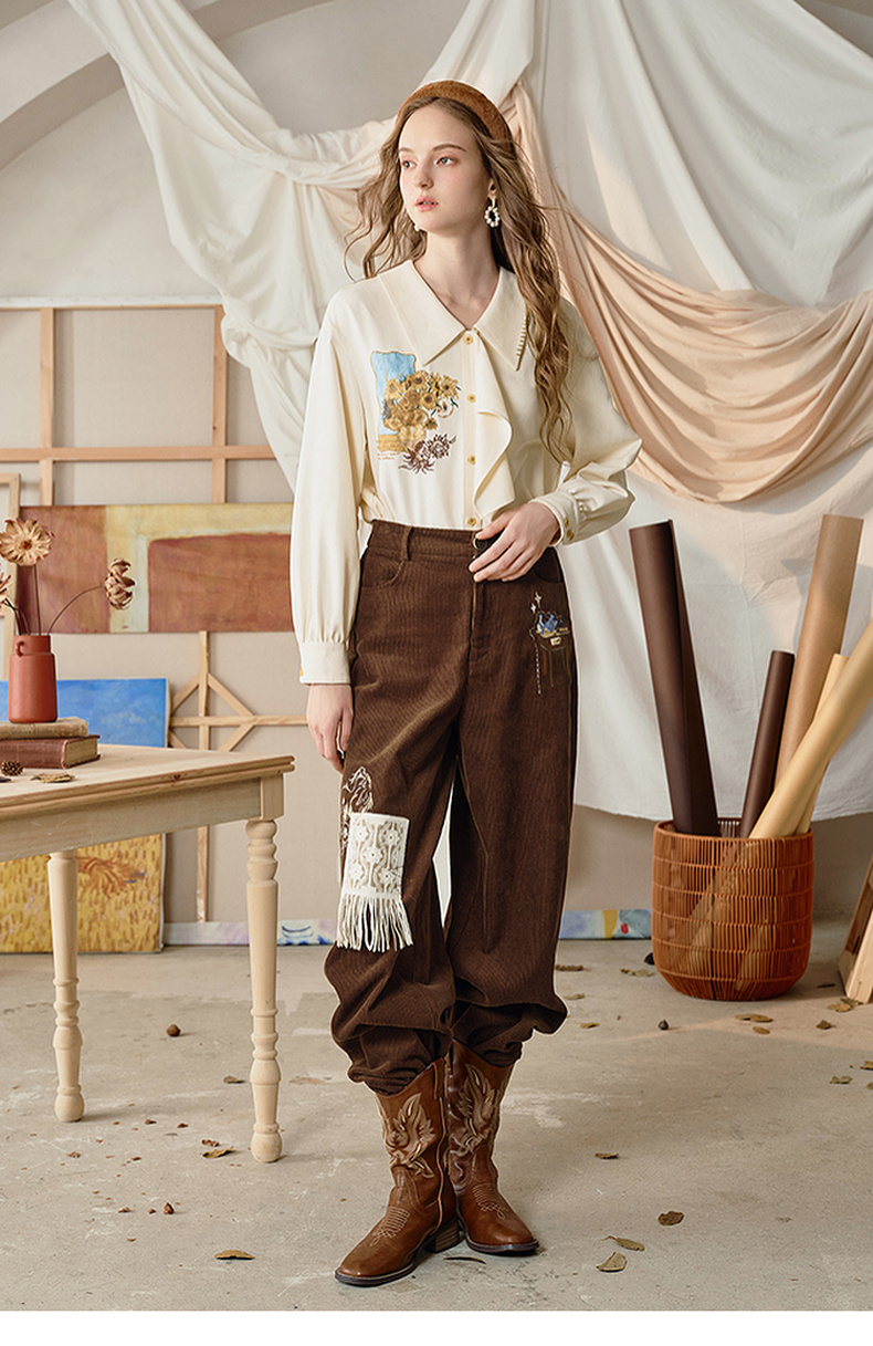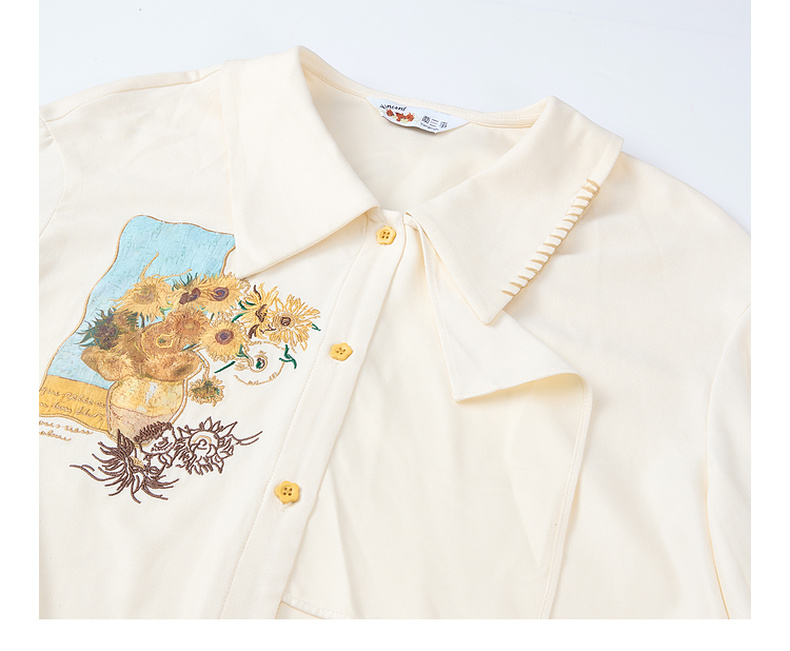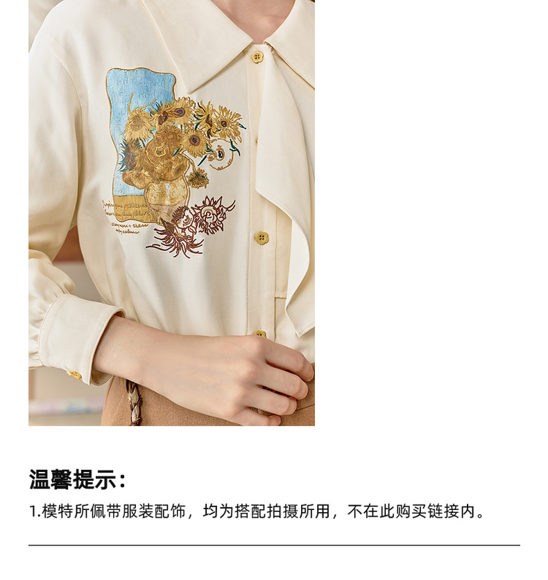 两三事梵高文艺 枕边心事 2025秋季新款印花贴布绣领带装饰衬衫女