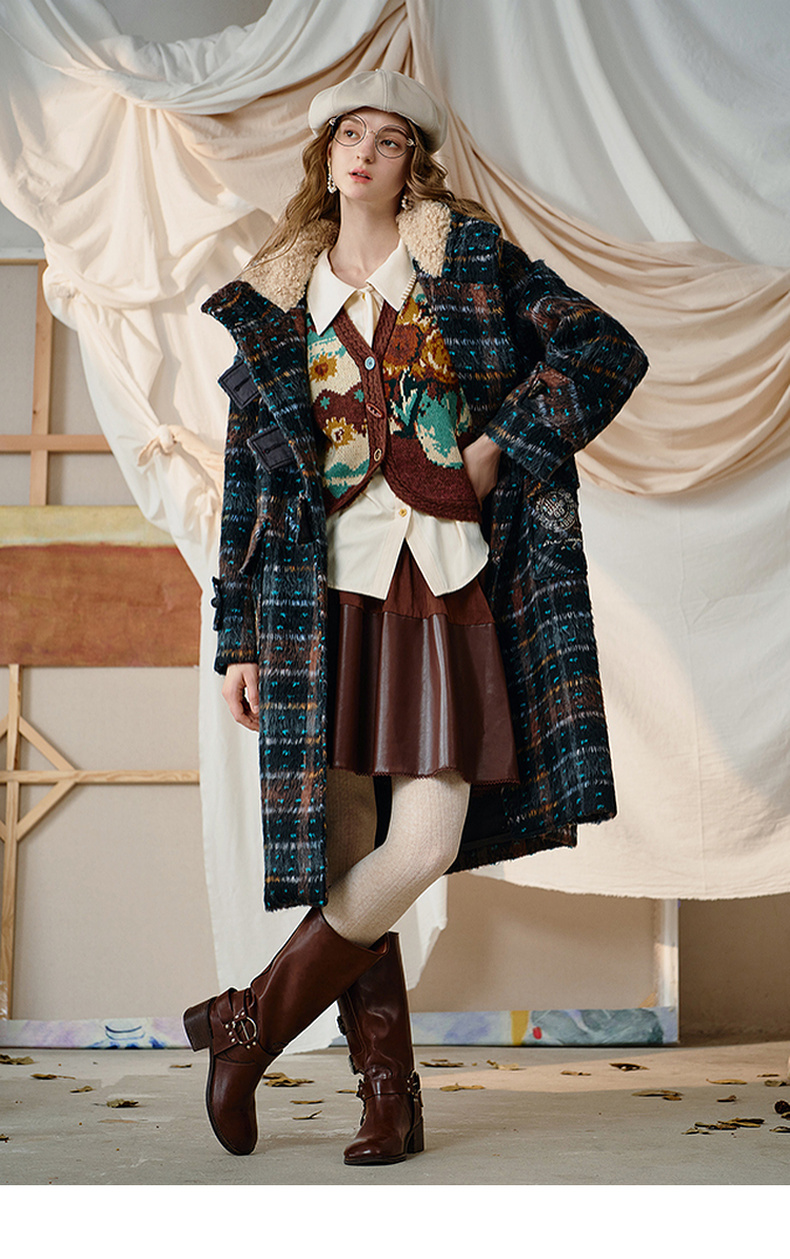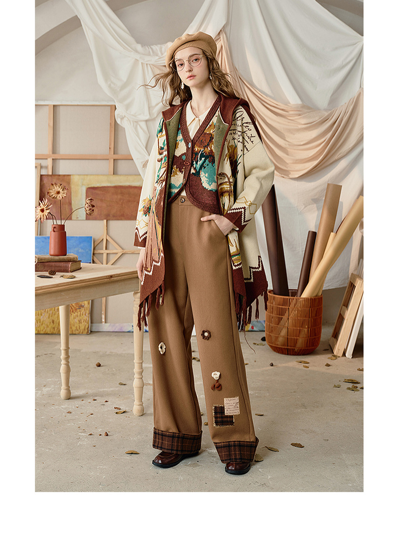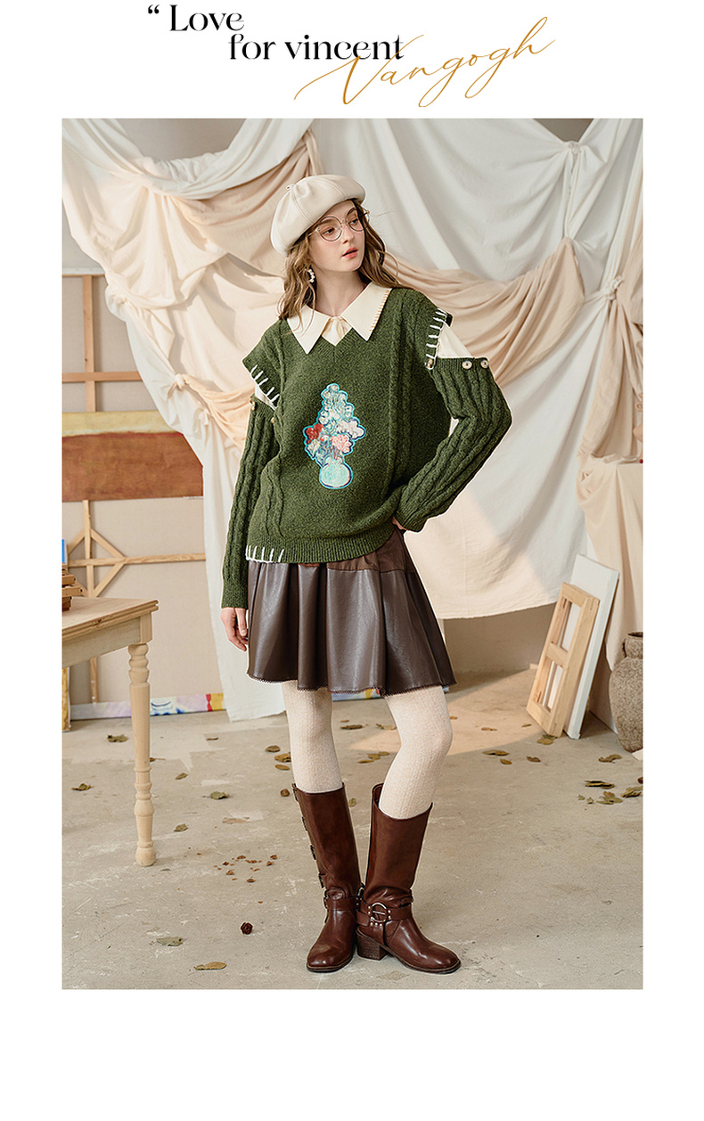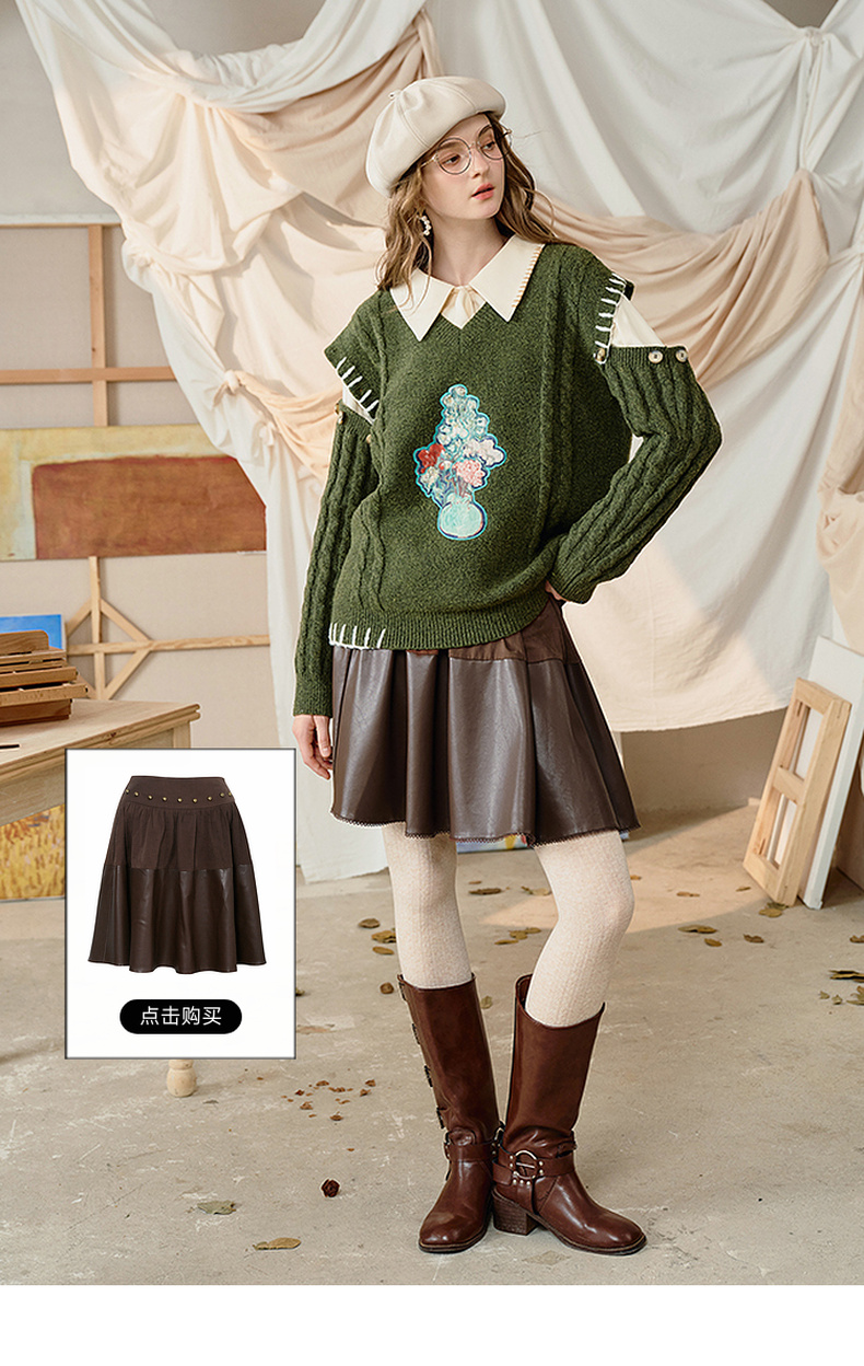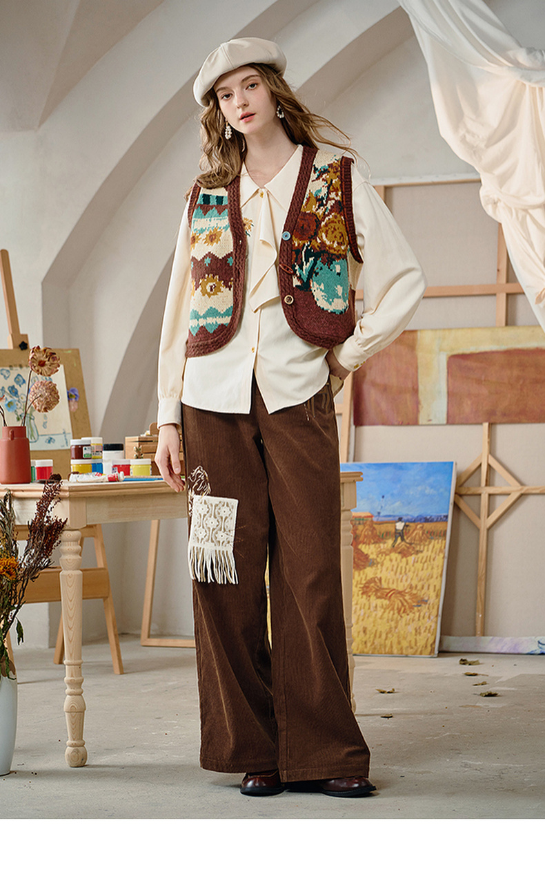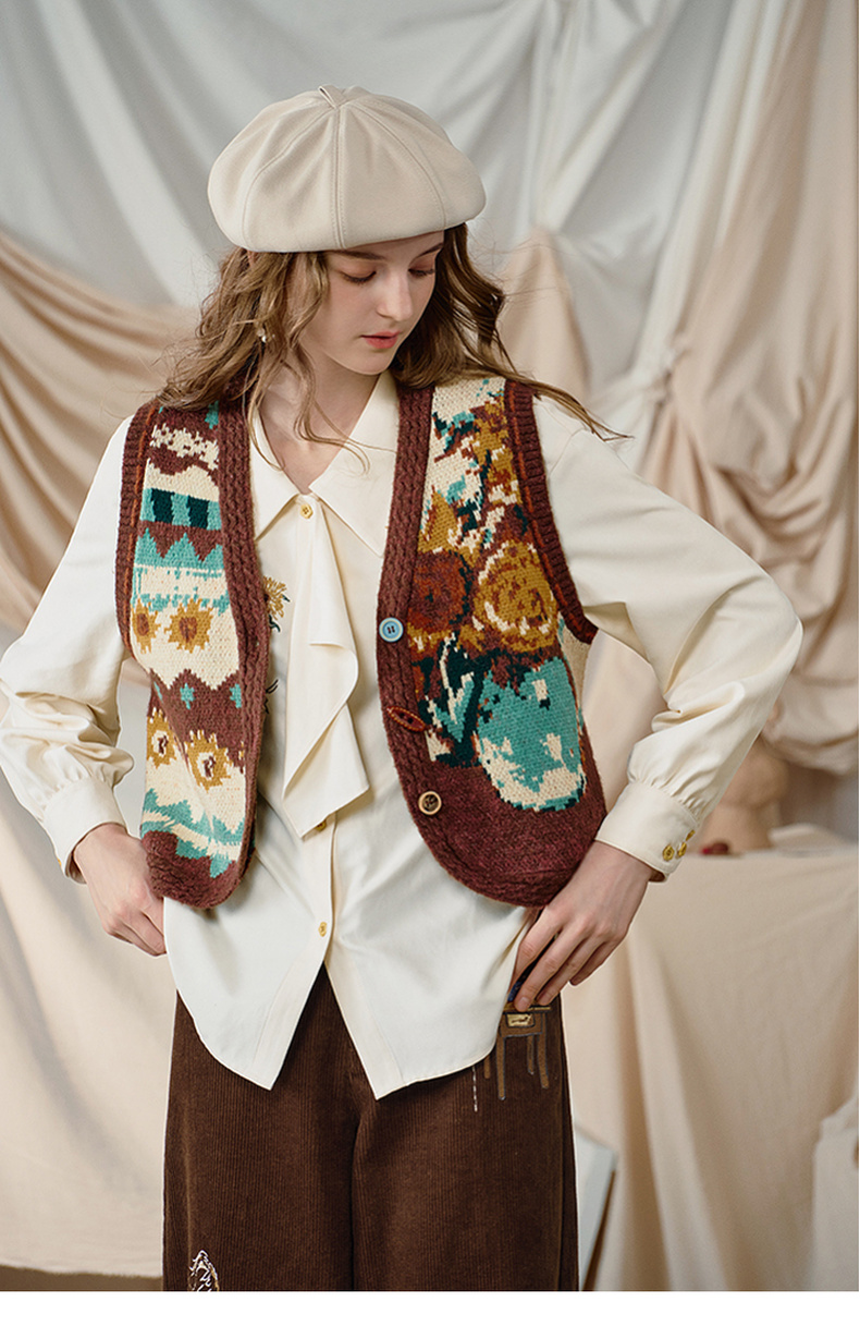 两三事梵高系列静美如秋叶冬新款无袖短款毛衣背心女复古慵懒