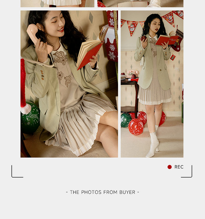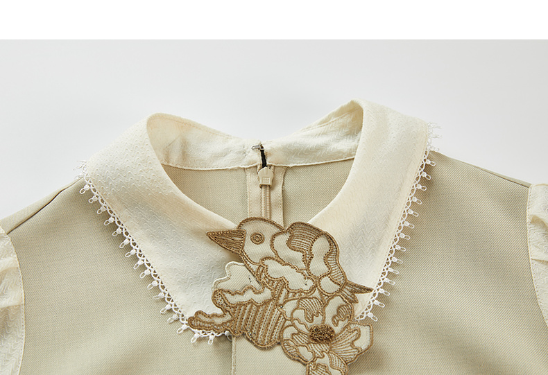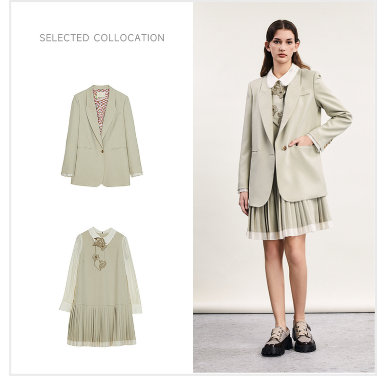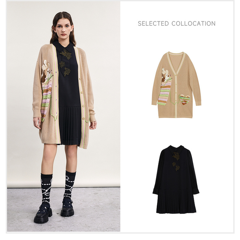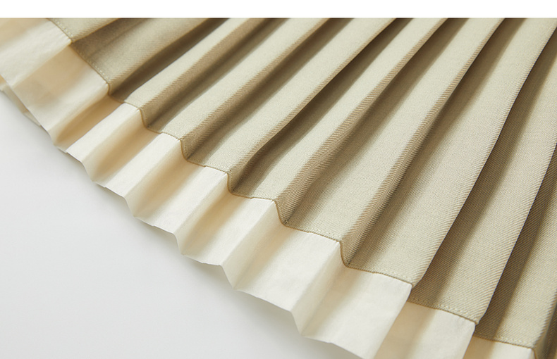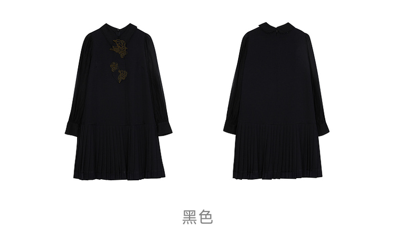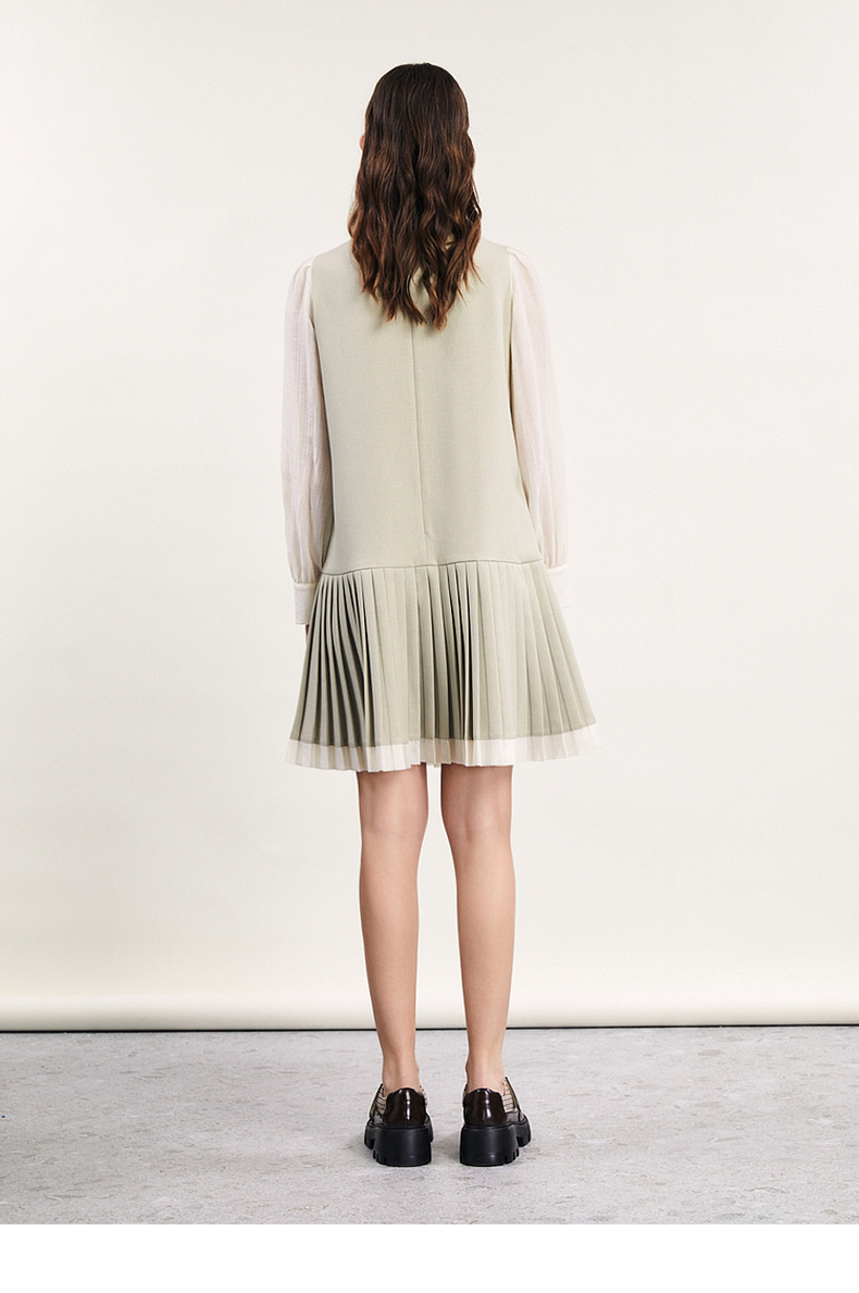 谜底百褶连衣裙长袖女2024春款学院风设计感拼接中长裙241ML0101