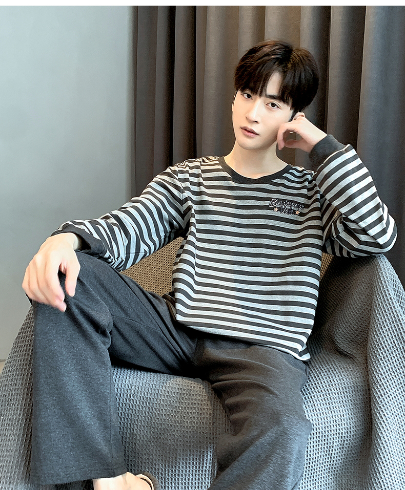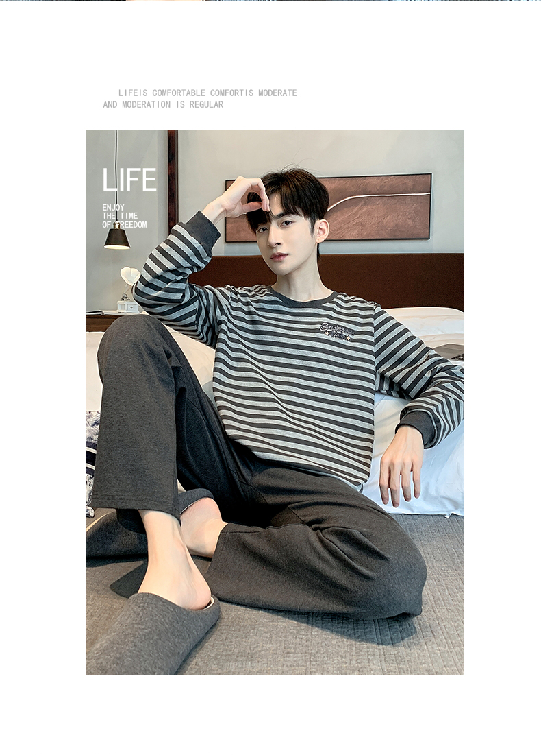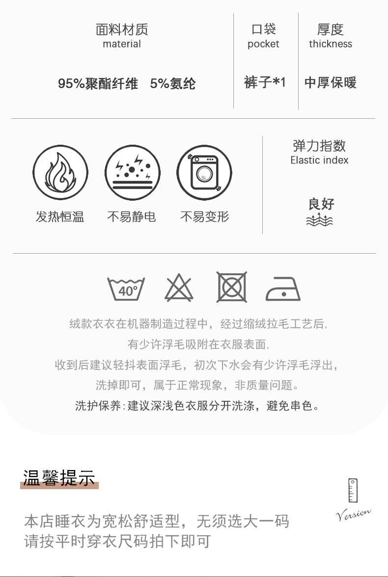 自然醒安隅男士家居服德绒保暖长袖长裤套头睡衣QH