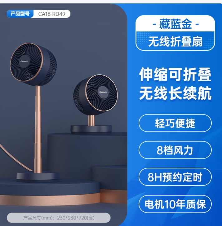 艾美特空气循环扇家用 台式电风扇可折叠风扇 CA18-RD49 蓝色【GCF】