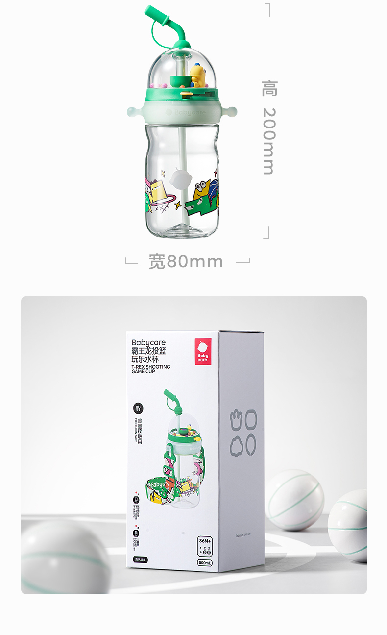 【特价】【babycare好物集】投篮儿童水杯大容量便携玩趣吸管杯男女孩幼儿园直饮水壶