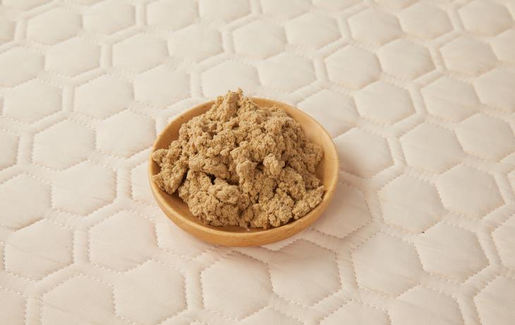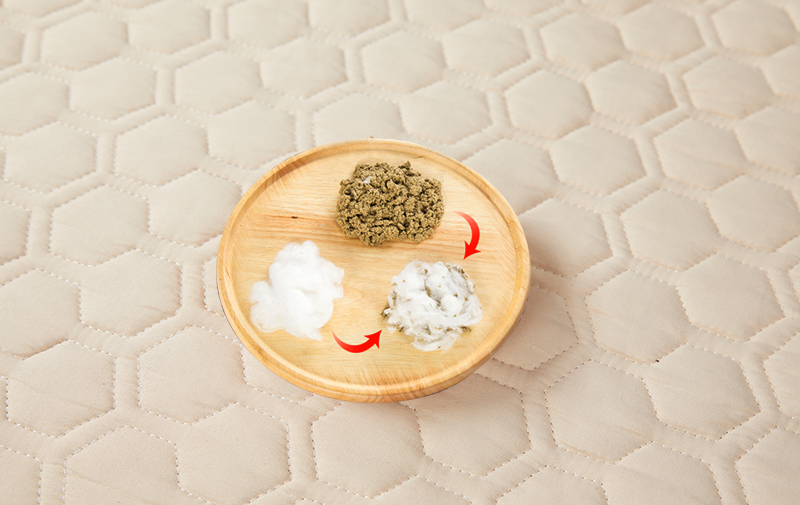 为了固定艾绒、提高舒适度,平直堂一直在研究艾绒和棉花的配比。这款床垫,他们特地选用新疆长绒棉+2.2斤艾绒来做。