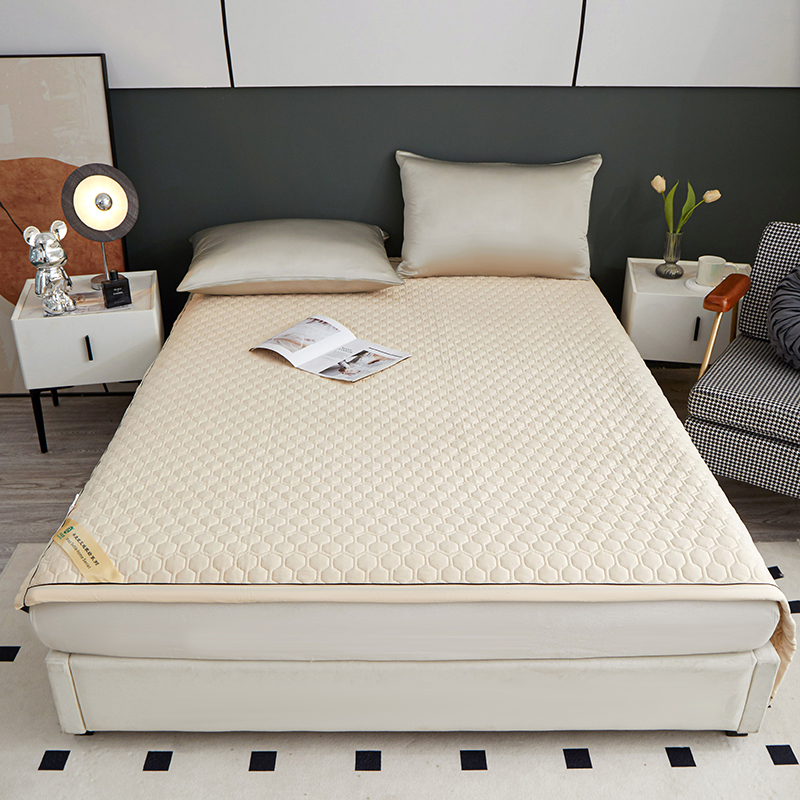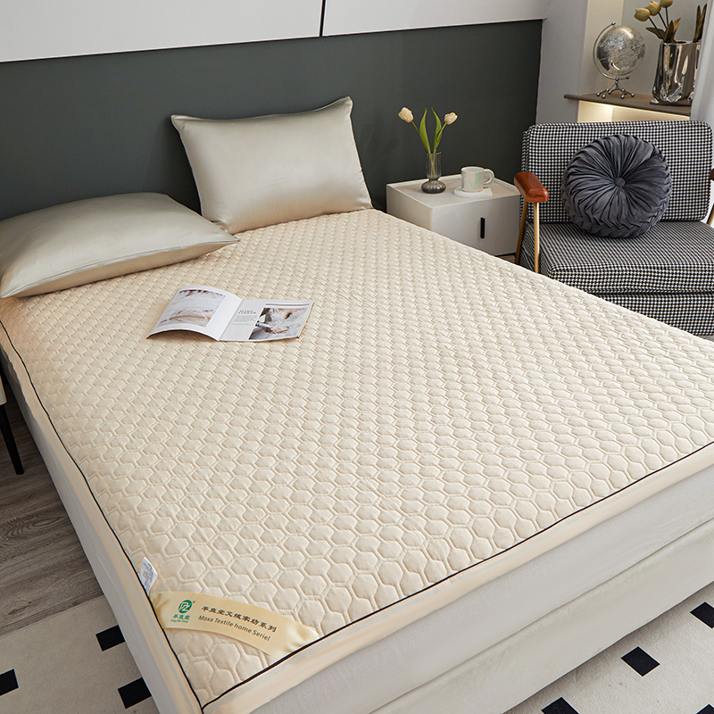 它的尺寸是1.8*2米的。不过和席子不同,它可以像被子一样随意折叠,完全不怕折坏,常见尺寸的床都能适用
