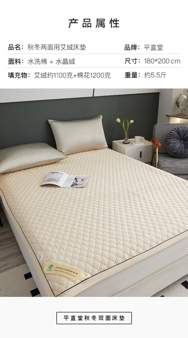 【春节不停运】【买即送4盒颈椎贴膝盖贴】平直堂秋冬双面床垫, 陈年艾绒+新疆长绒棉,睡着就能养身排湿【G】