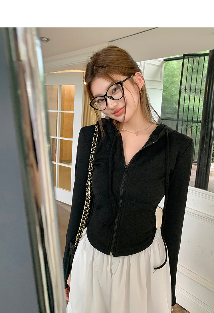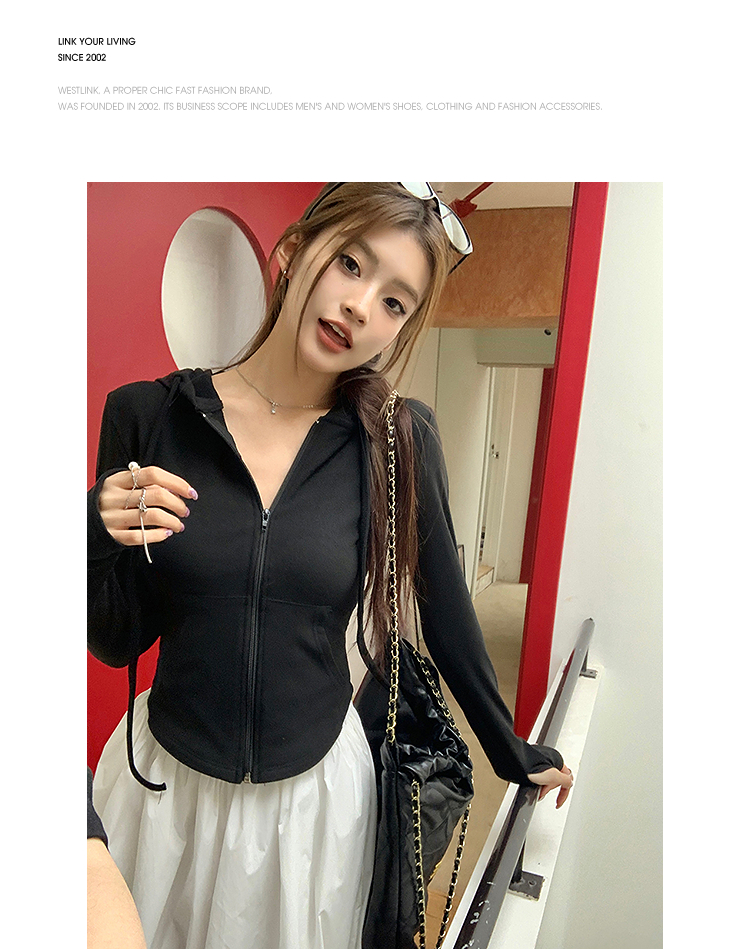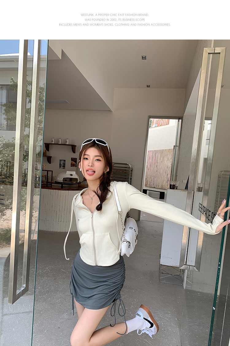 西遇连帽拉链抽绳卫衣女2026年春季新款运动风修身显瘦百搭上衣SS060140