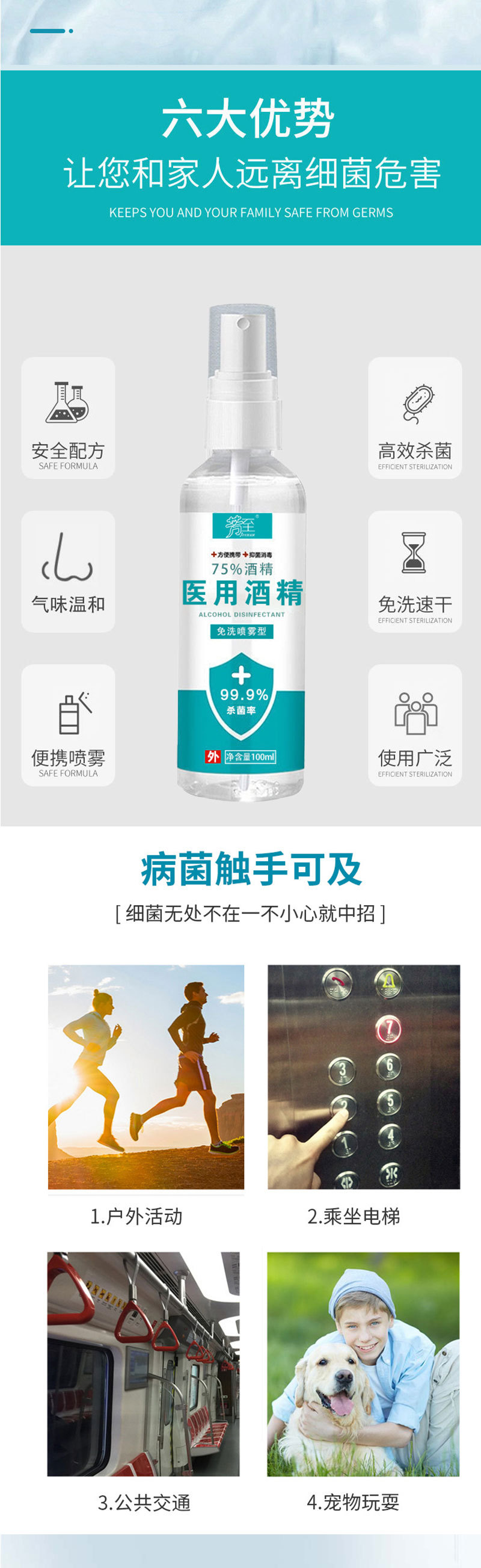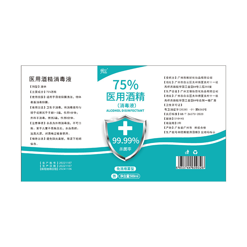 75%酒精84消毒液免洗速g抑菌酒精喷雾100ml