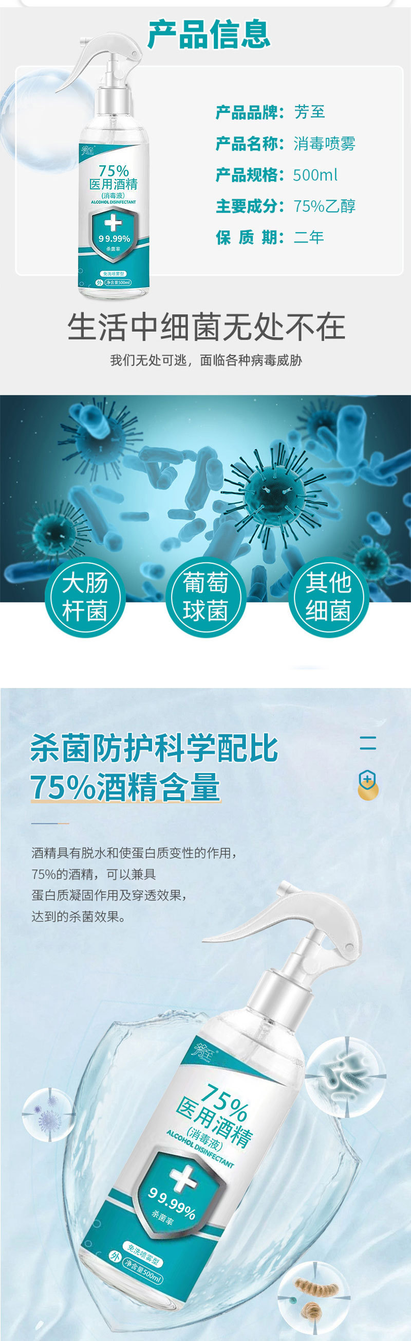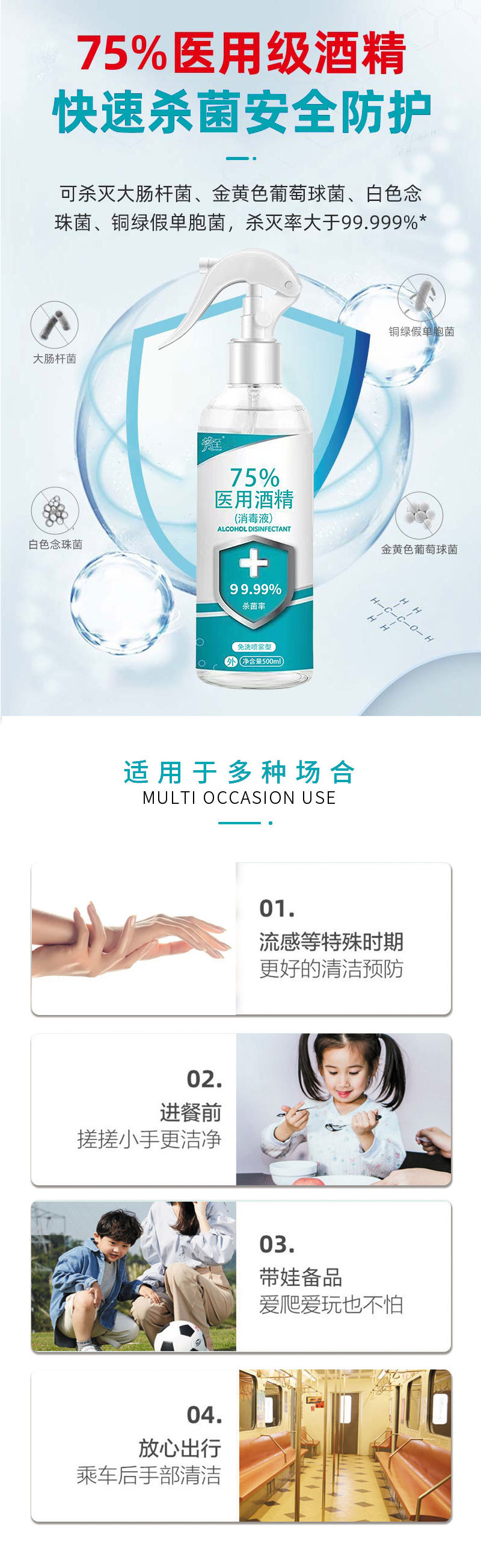 消毒喷雾酒精全能皮肤杀菌免洗速干清洁剂 500ml酒精喷雾
