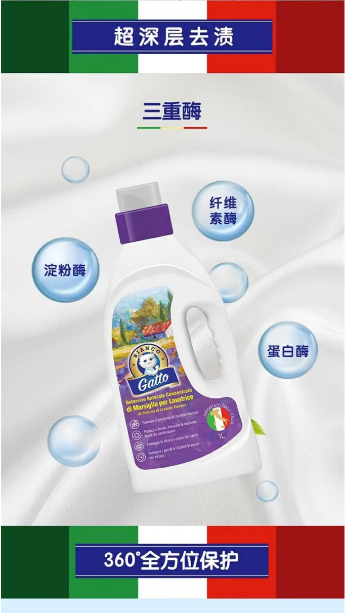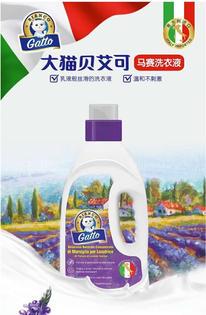 【商品名称】意大利天然浓缩马赛皂洗衣液1L/瓶