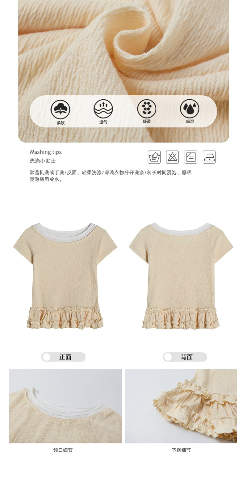 <曾小咸推荐>现货秒杀!微信超特价!撞色甜美木耳边短袖T恤圆领修身 日常119.99 立减60 秒杀59.99!