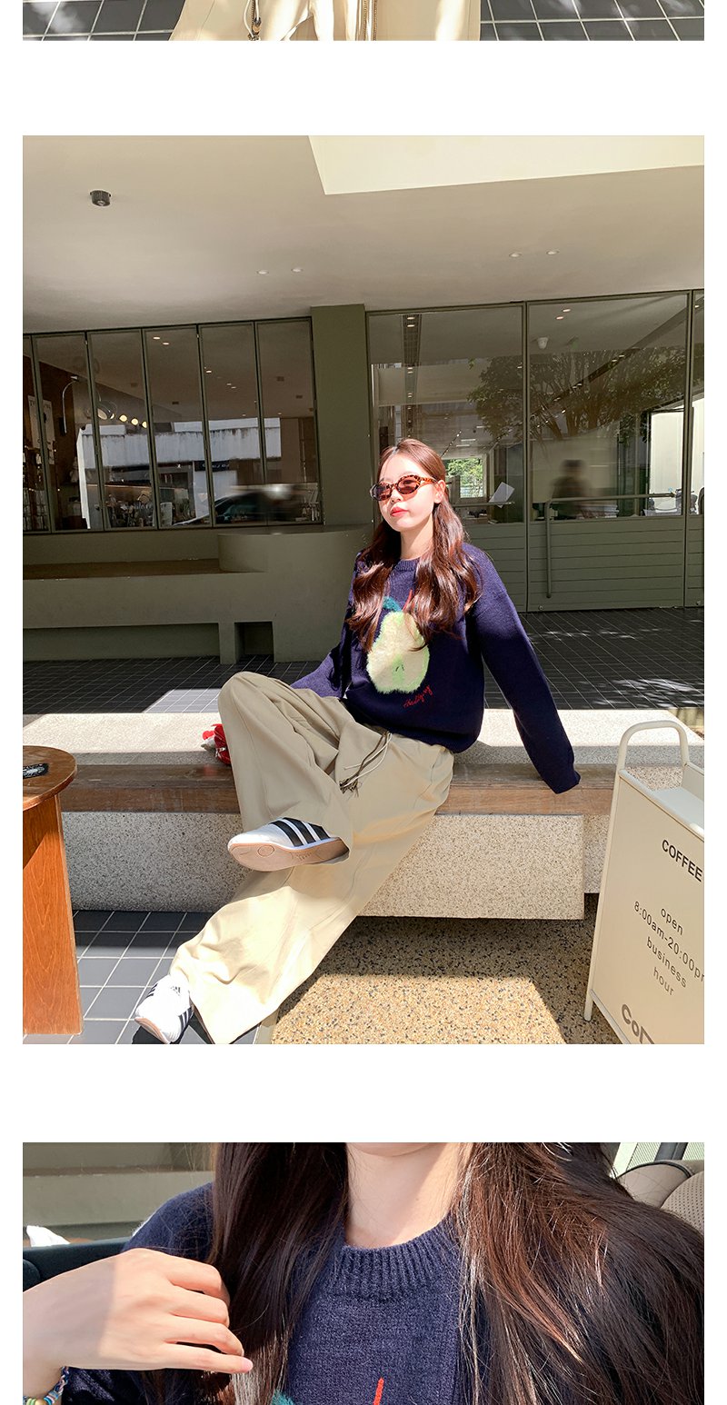 <曾小咸推荐>【现货】韩系刺绣圆领套头毛衣女 特价89.99秒杀!