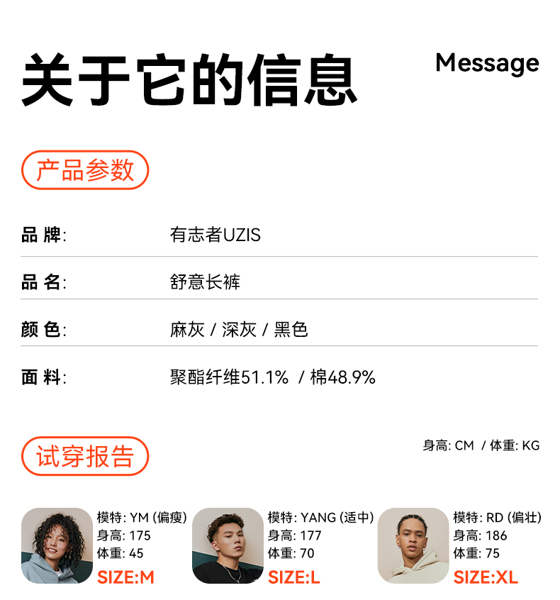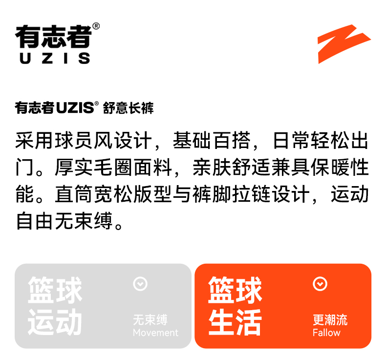 有志者UZIS宽松直筒针织运动长裤男休闲篮球健身跑步训练卫裤舒意