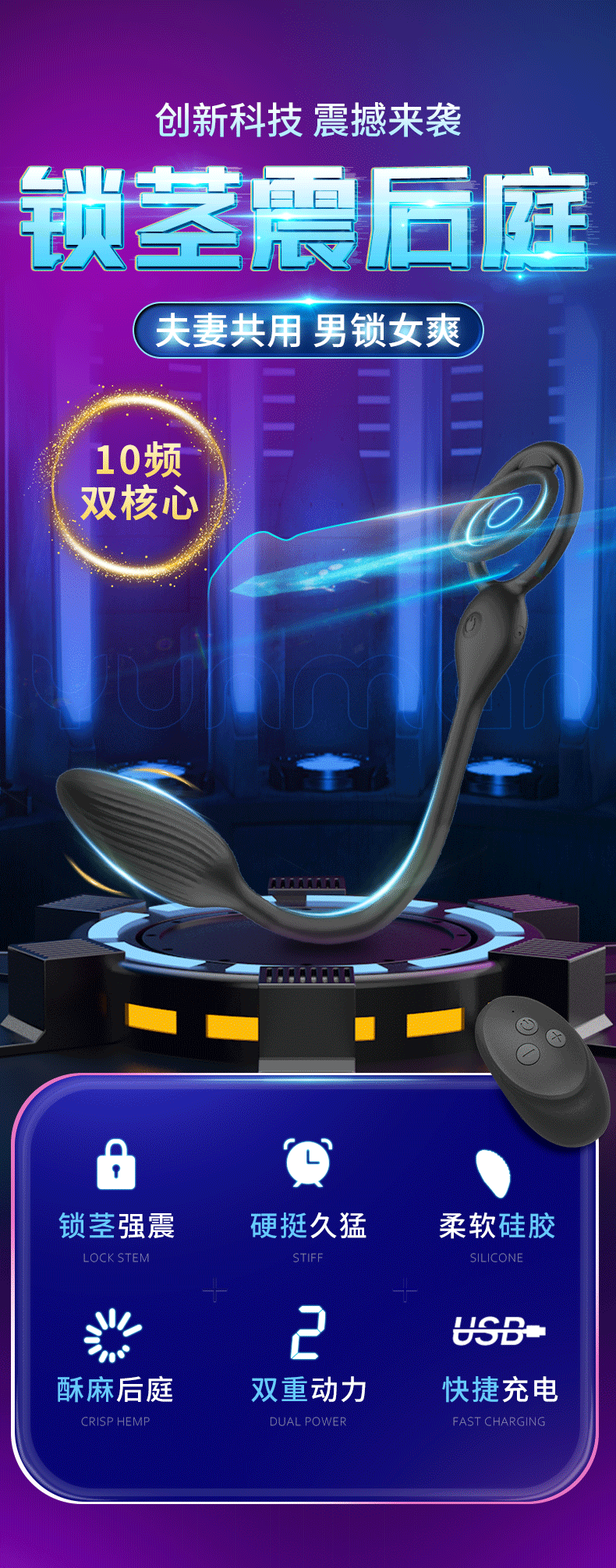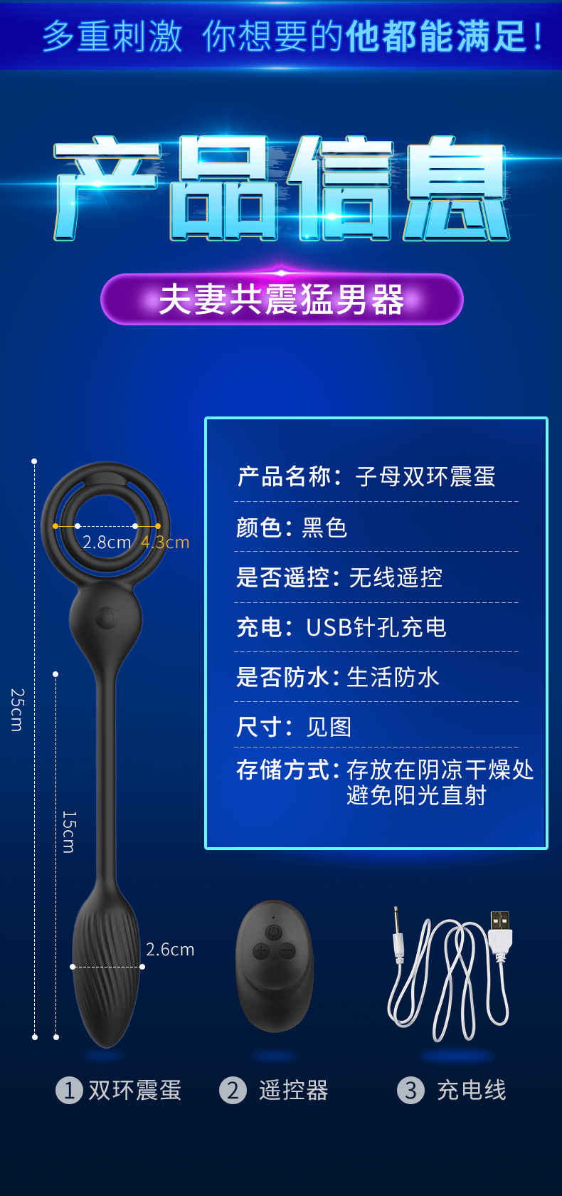 云曼 穿戴式户外锁精环遥控子母跳蛋 前后共震玩具
