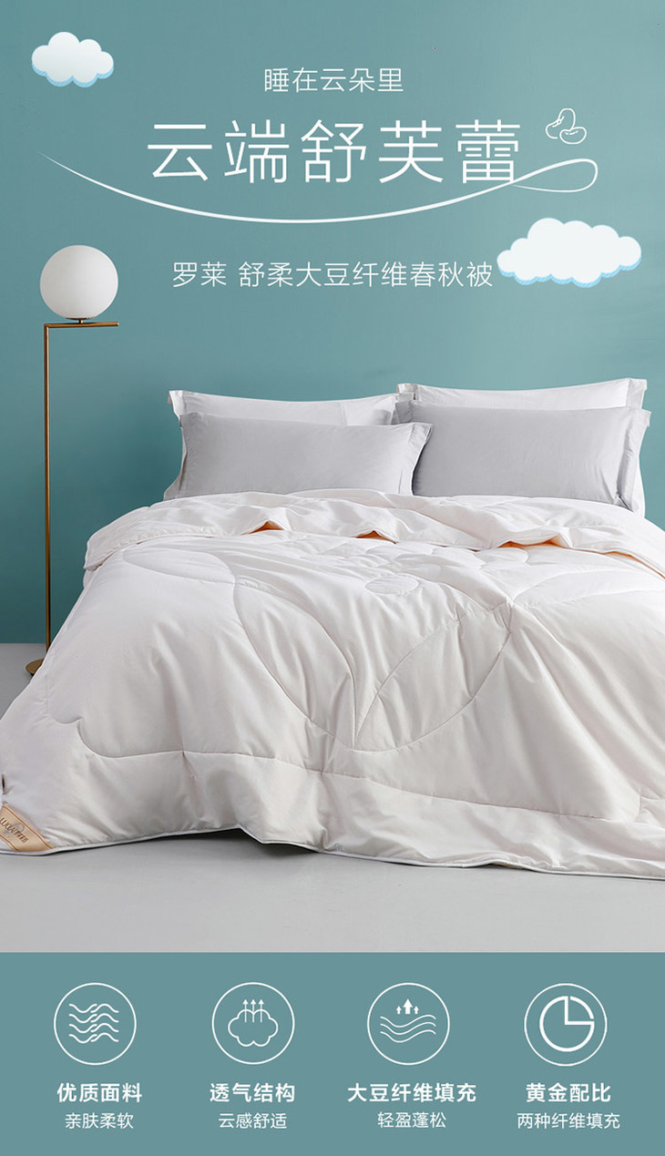 罗莱家纺床上用品被子被芯春秋被四季被50%大豆纤维被单舒柔大豆纤维被1.5米/1.8米床 200*230cm