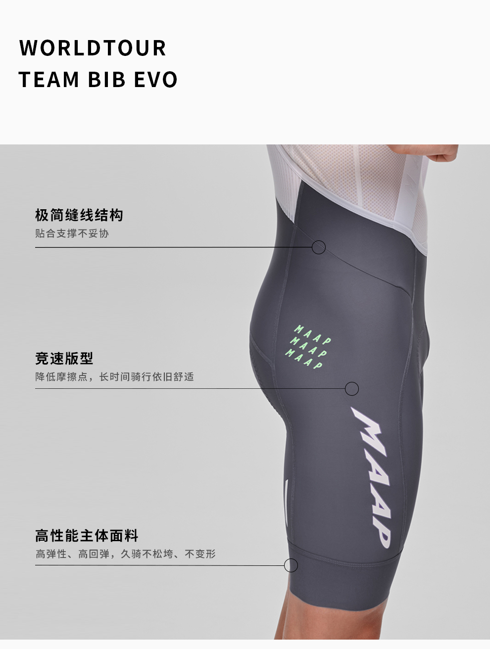 MAAP 男士 WorldTour Team Bib Evo 骑行短裤 远洋灰