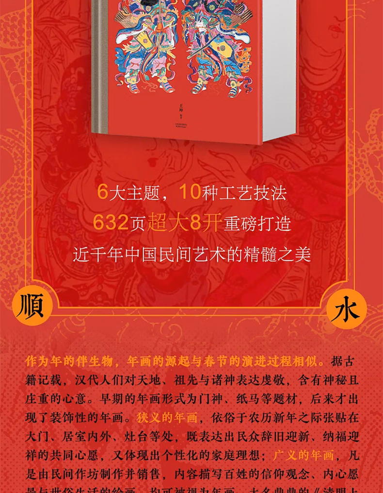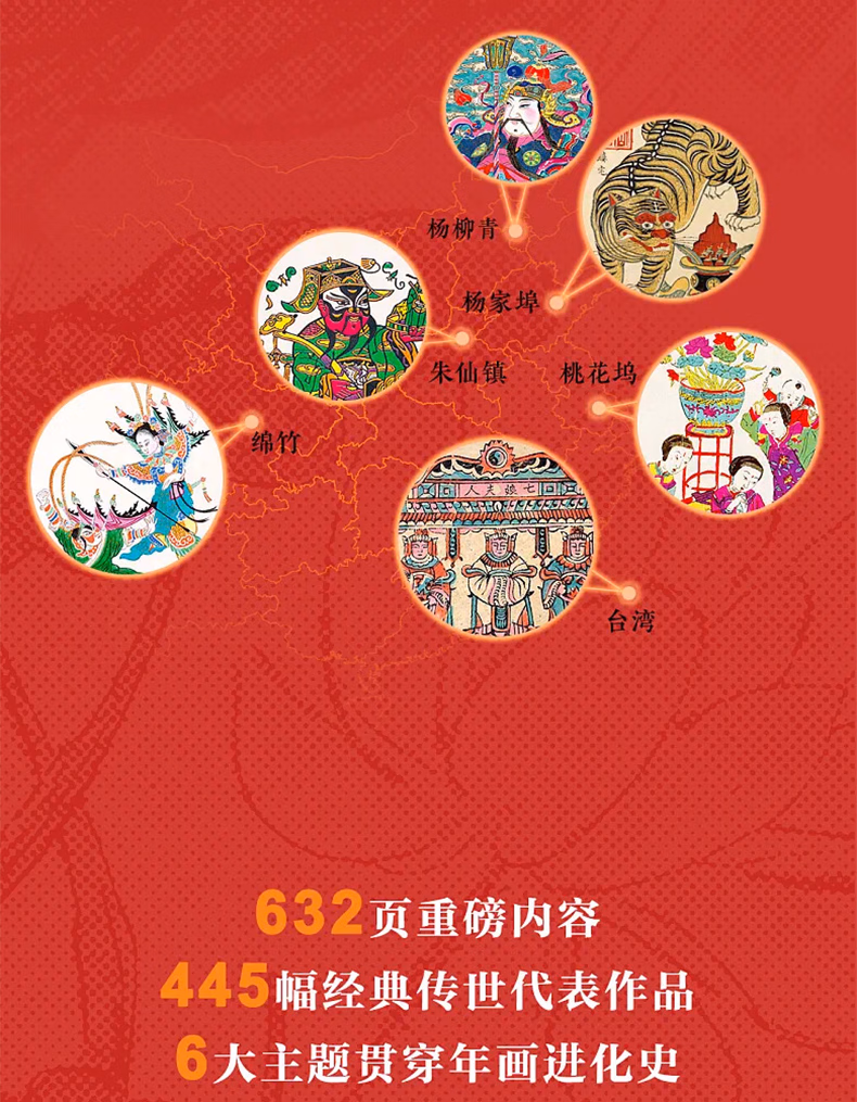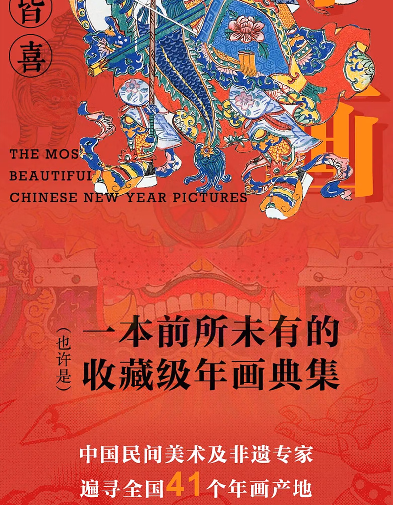 在《最美中国年画》一书中,编者精心挑选了遍布全国各年画产地的代表性作品,共计445张,以门神门画、神像纸马、节俗生活、美人娃娃、戏文故事、博古胜景六个大类分别展示,从艺术风格与文化内涵多重角度再现年画的独特审美系统。
