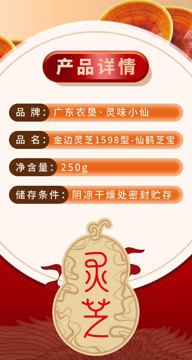 【自营】25年灵味小仙 金边灵芝 1598型 广东农垦灵芝