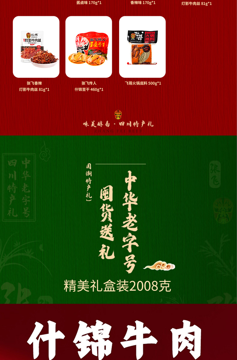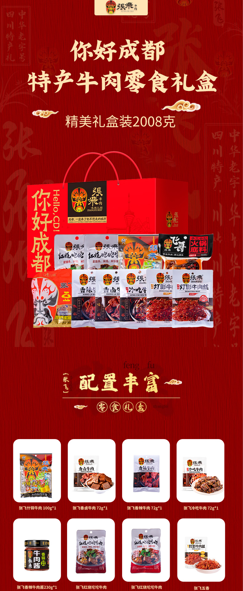 张飞 你好成都特产牛肉零食礼盒-2008g【年货】JCT