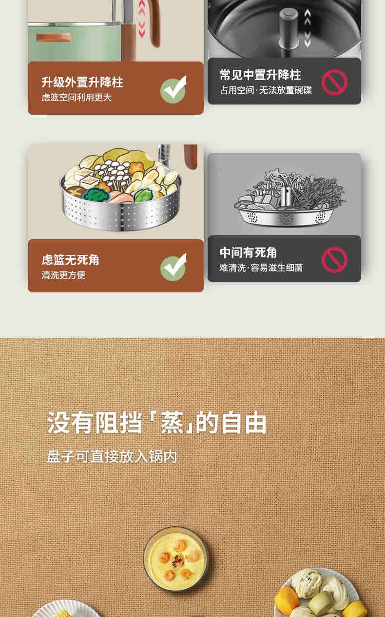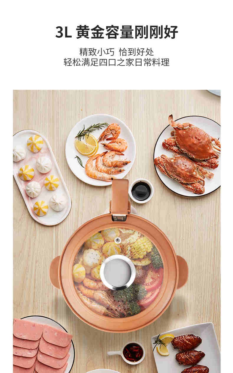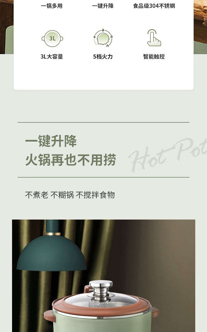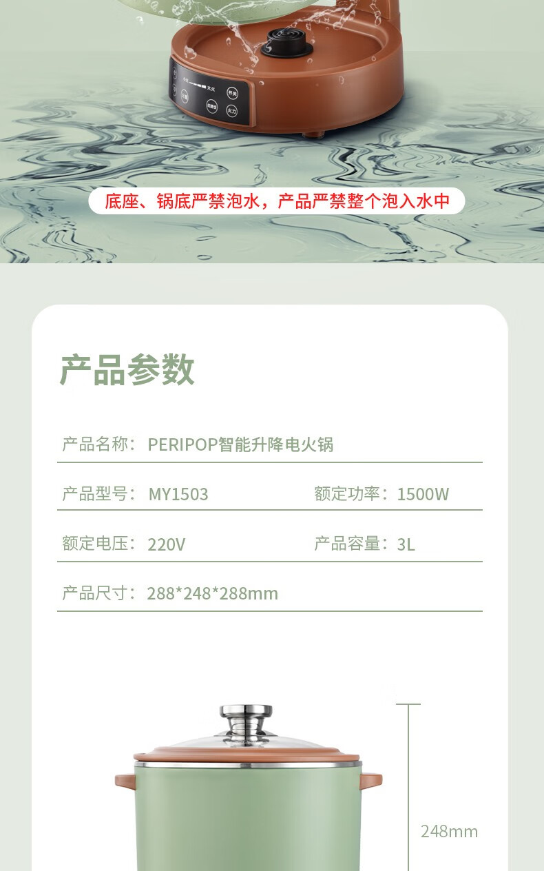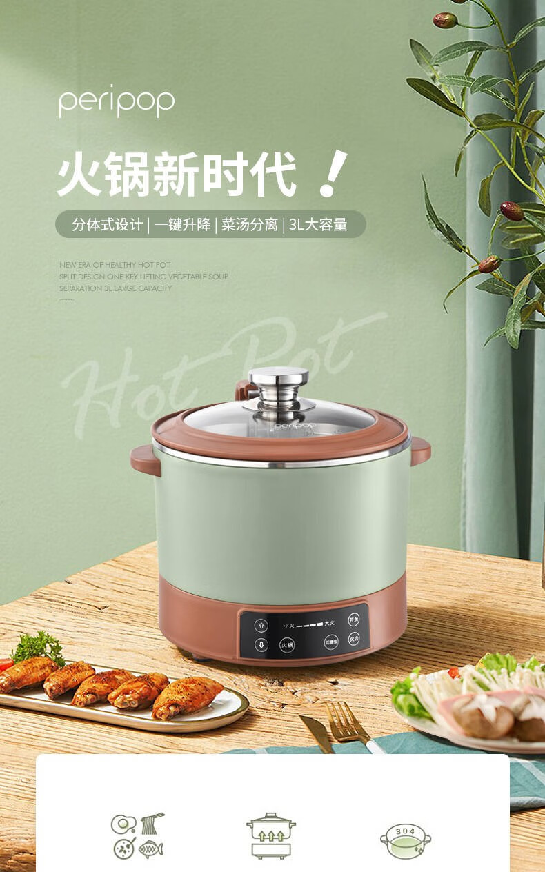 【小家电】PERIPOPperipop小派派自动升降电火锅家用多功能料理锅一体快速蒸烤煮电热锅MY1503 HF