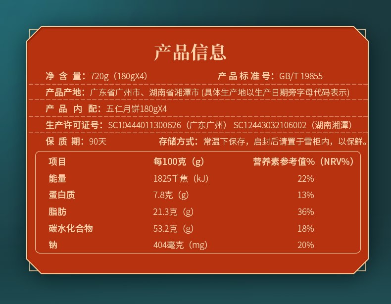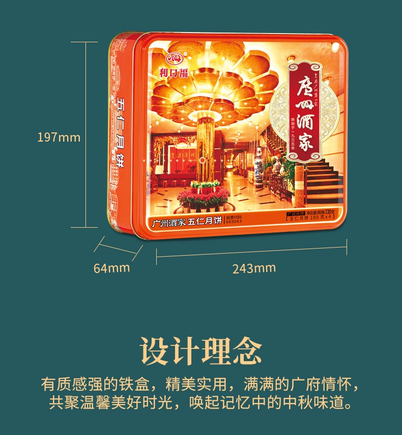 【团购】(票券同售)广州酒家经典款 | 五仁月饼 180g*4颗装