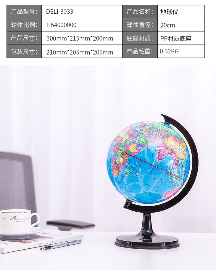 得力地球仪3031(彩色)10.6cm