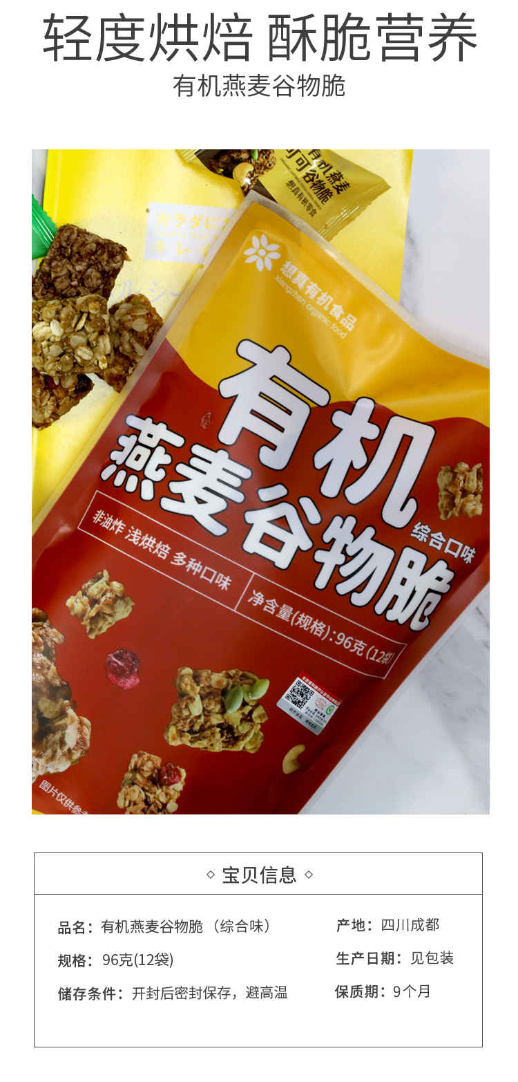 想真有机谷物脆96克*2袋有机原料放心零食营养代餐支持自提