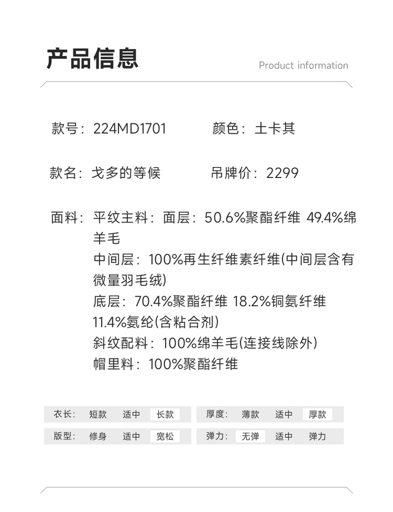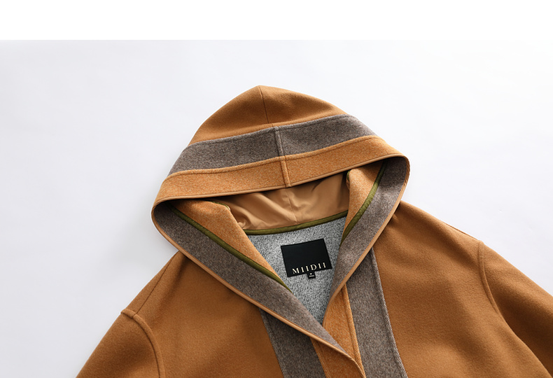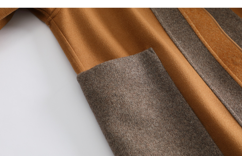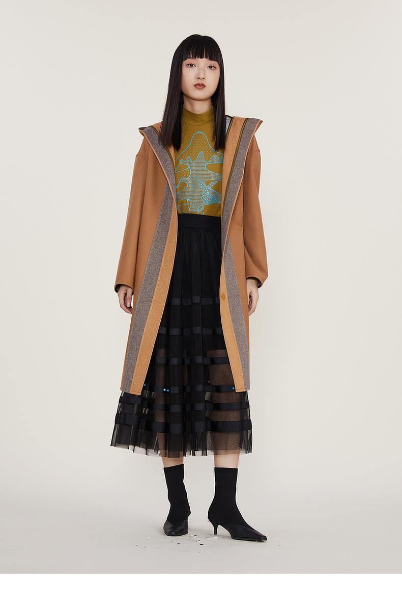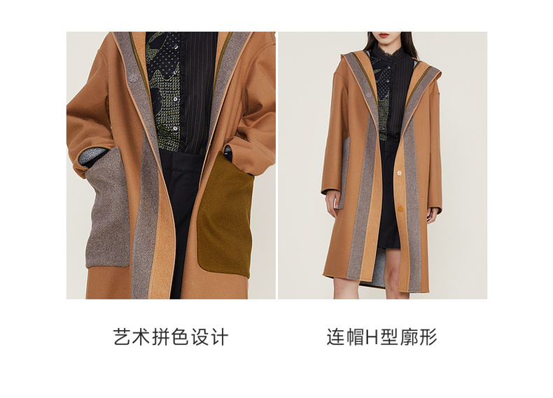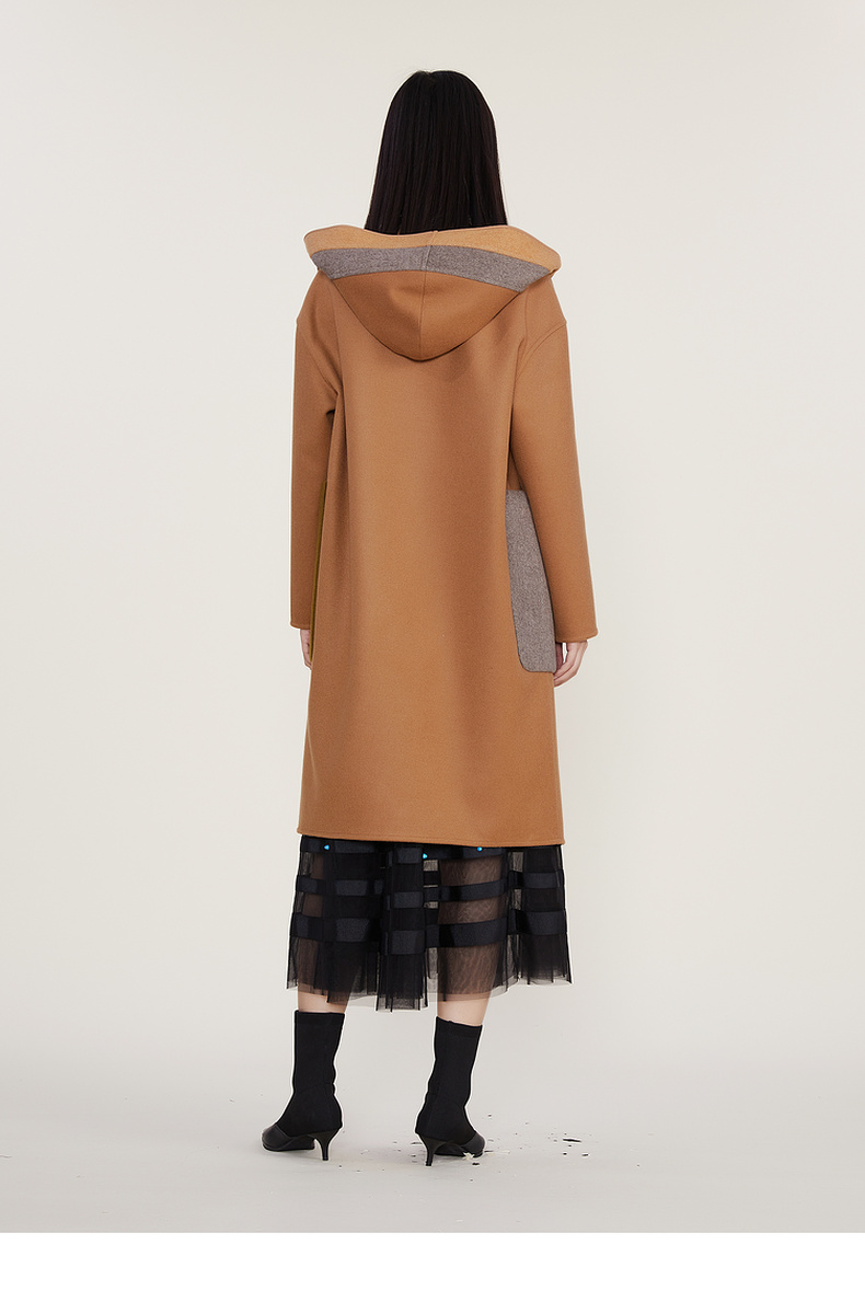 谜底2022冬季新款连帽毛呢大衣女宽松休闲拼接式长呢子224MD1701