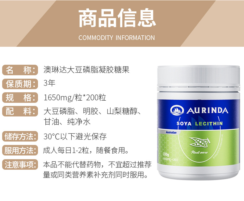 澳洲进口澳琳达大豆磷脂胶囊健康食品成人中老年lecithin200粒