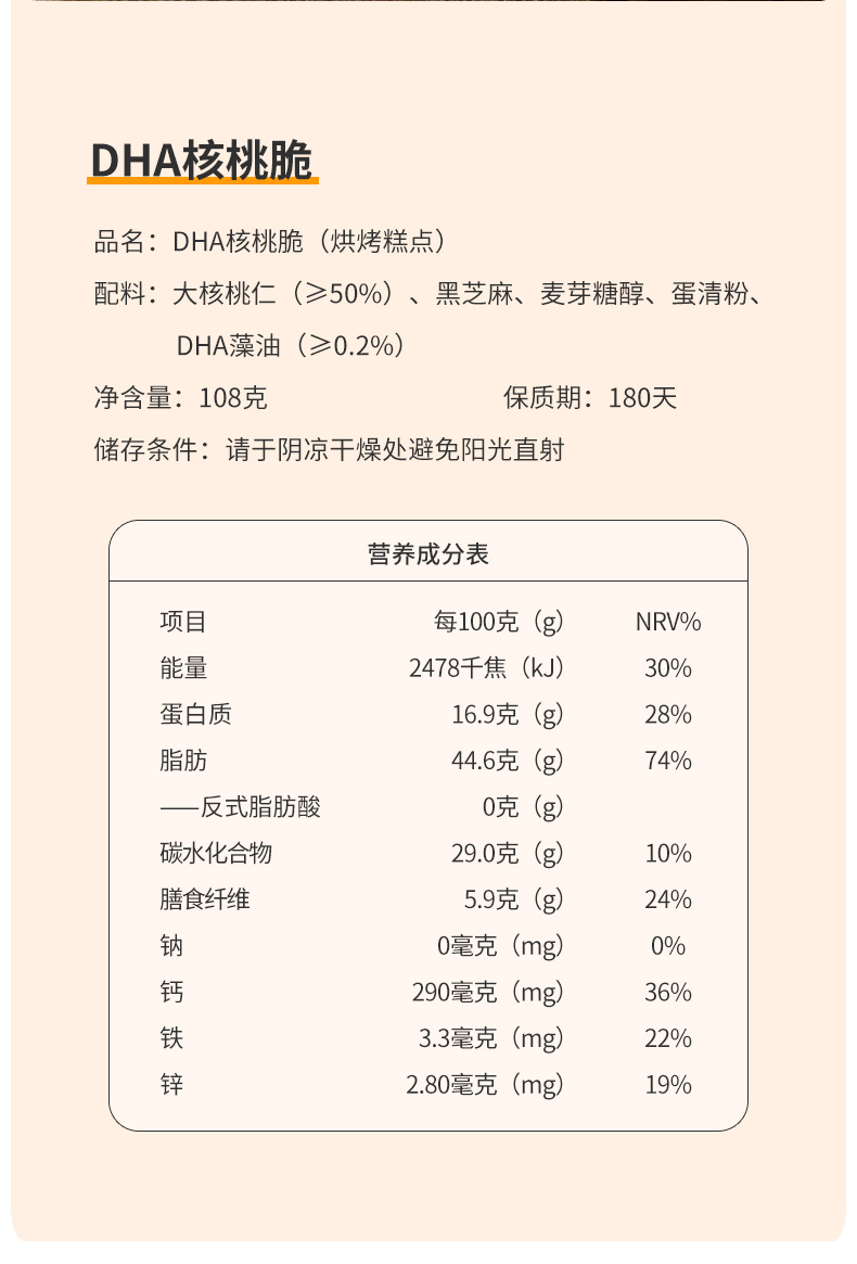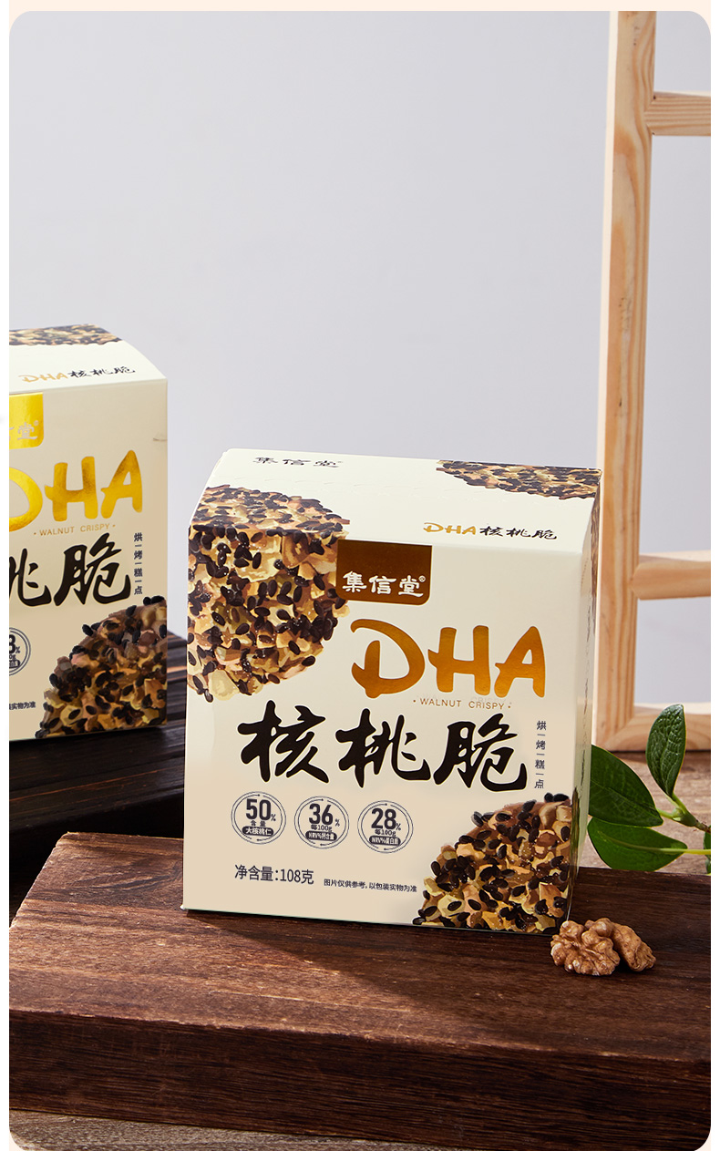 【KL】 | 集信堂DHA核桃脆 添加50%新疆大核桃仁,加入DHA藻油 ,轻甜不腻,酥酥脆脆,满口芝麻香,独立袋装 108克/盒