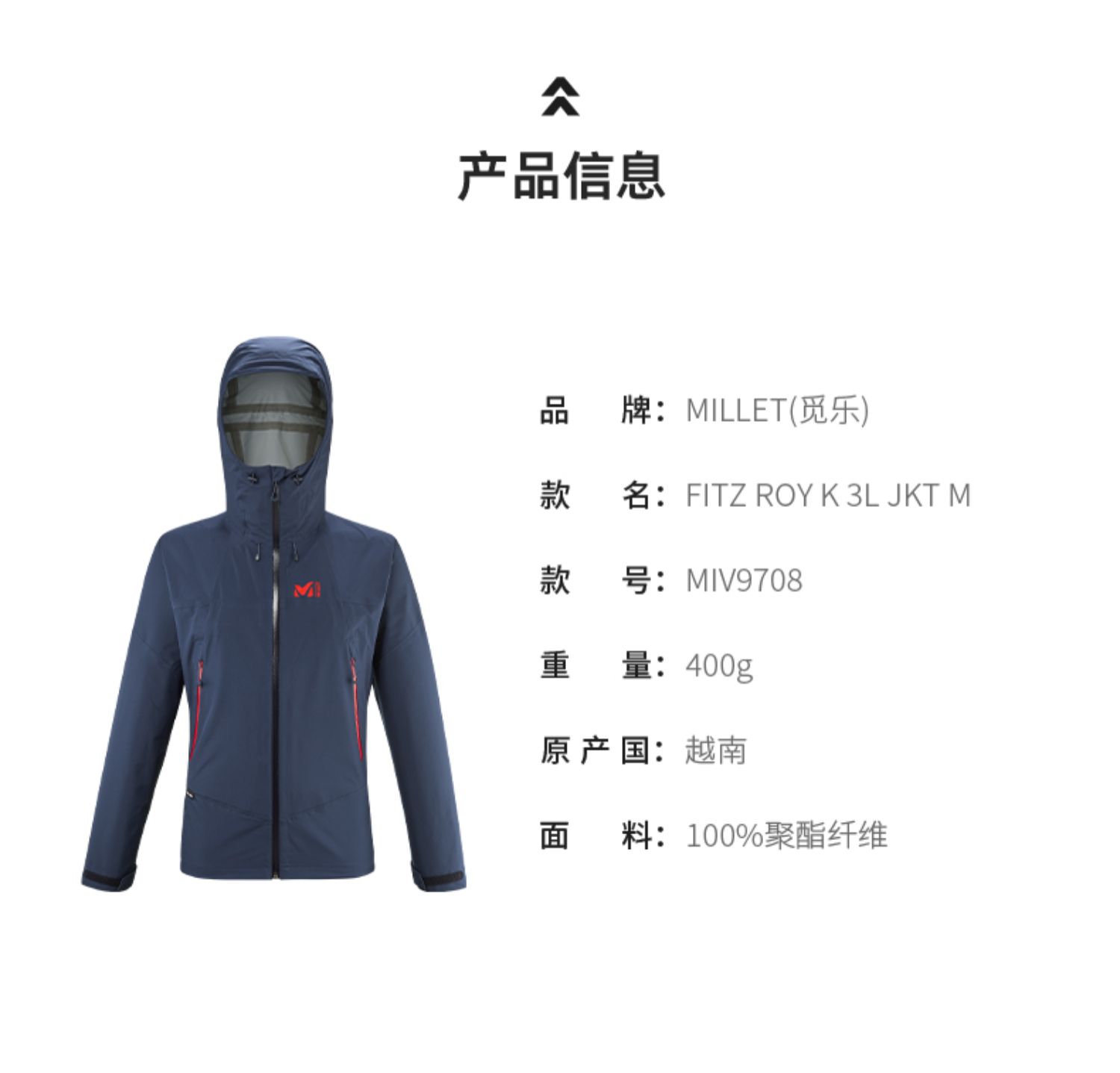 MILLET男式冲锋衣 MIV9708 FITZ R K 3L J M