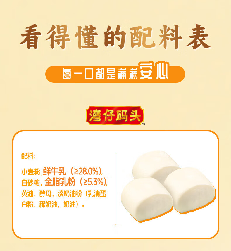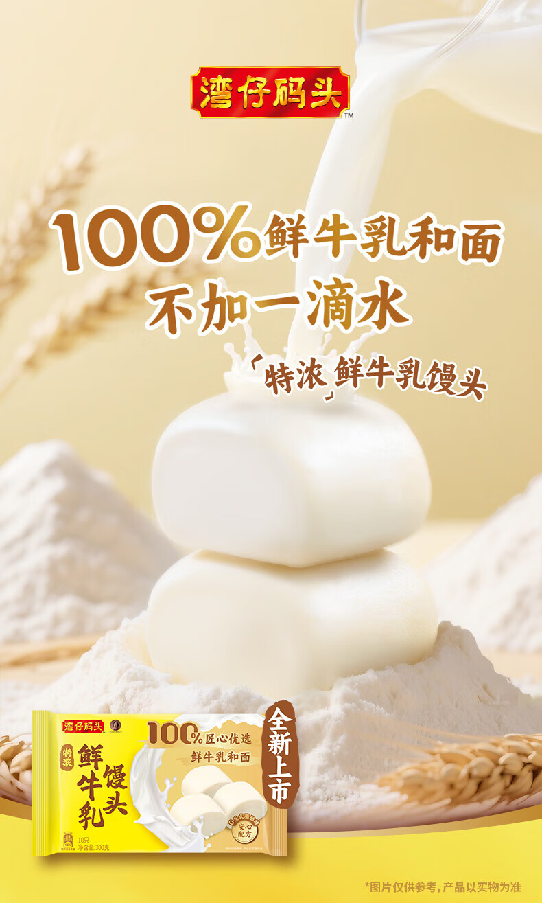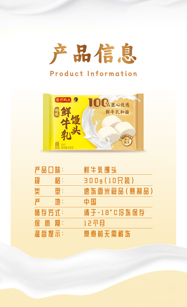 湾仔码头鲜牛乳馒头300g/袋【冷冻】