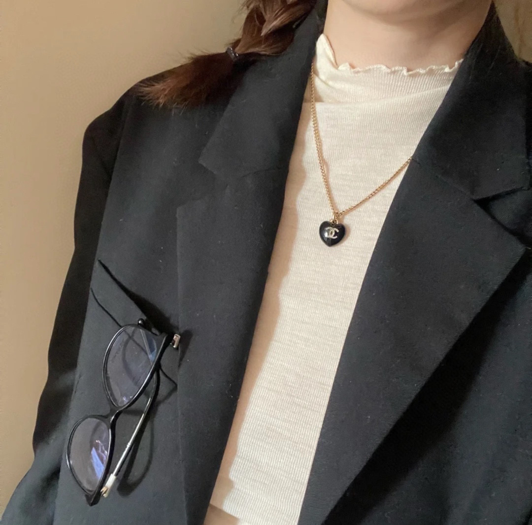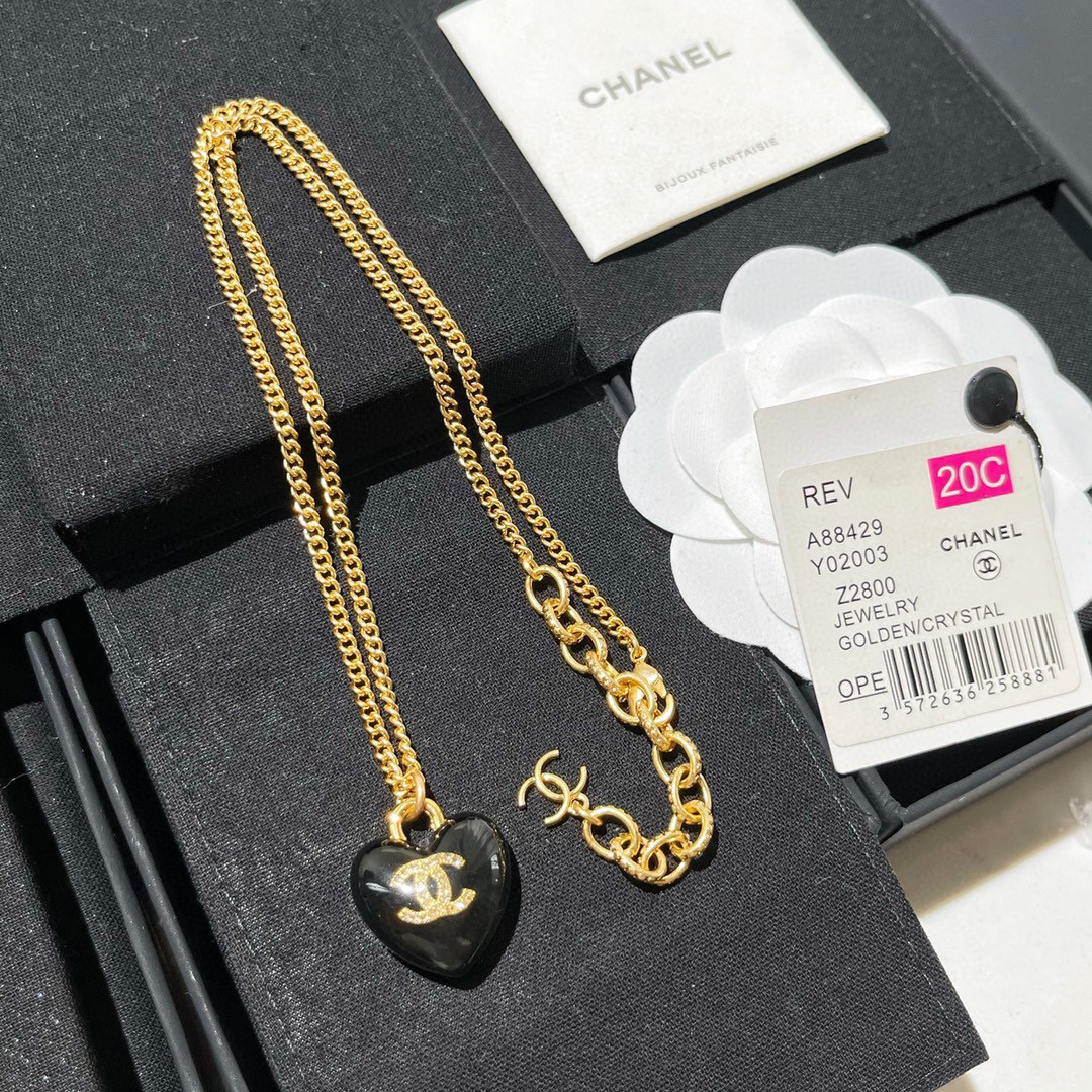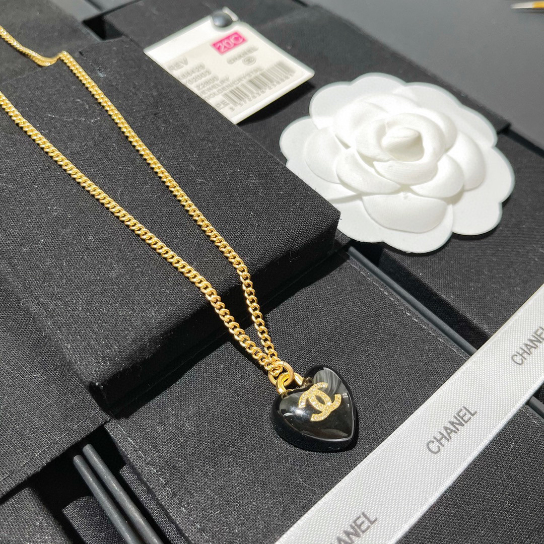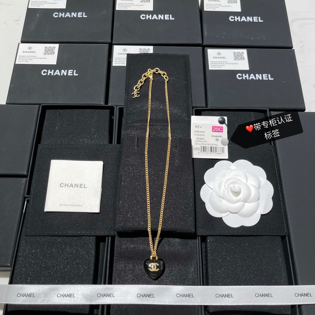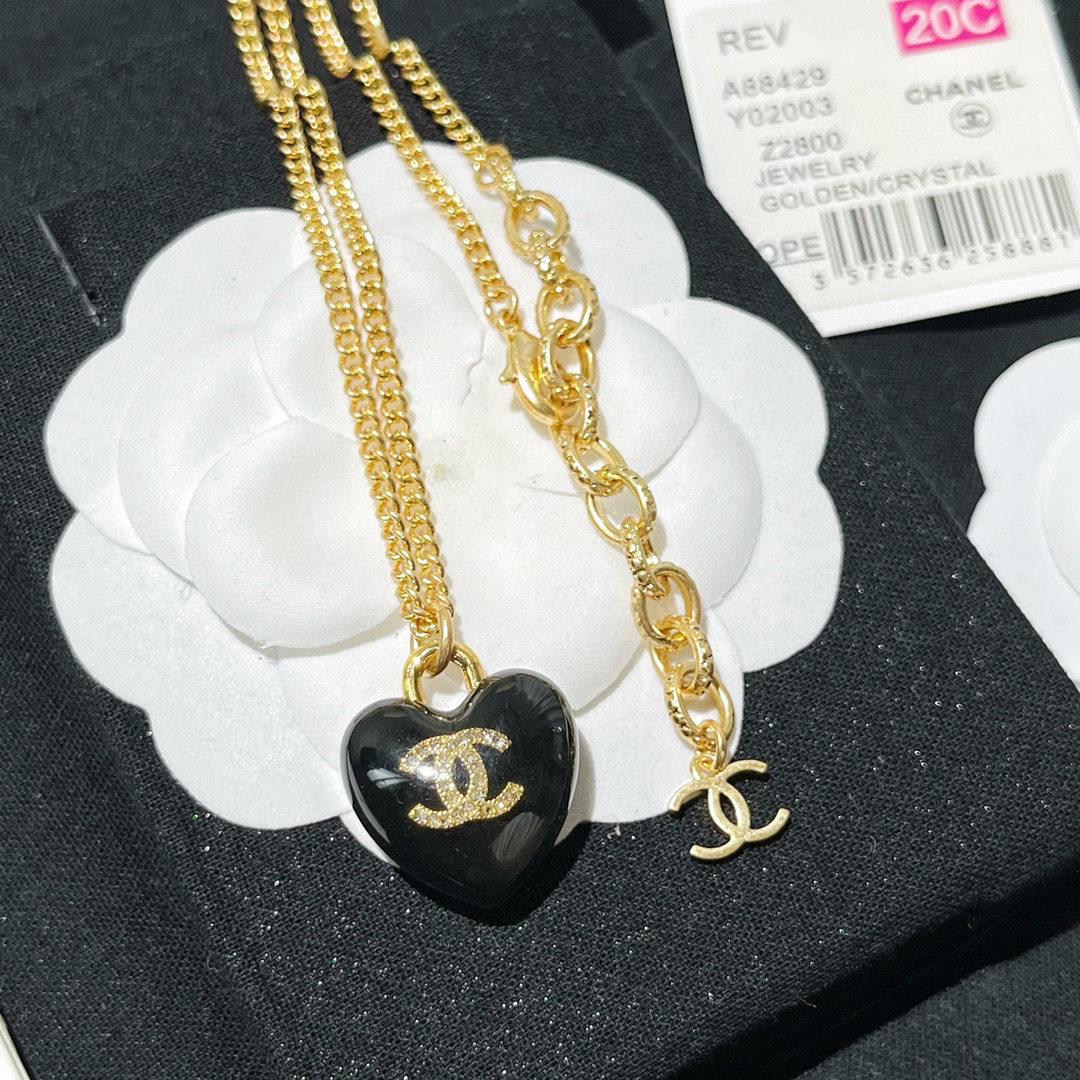 ☀️2021新款CHANEL香奈儿双c黑色桃心项链