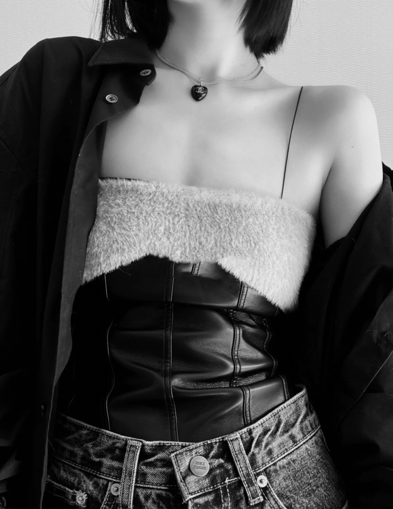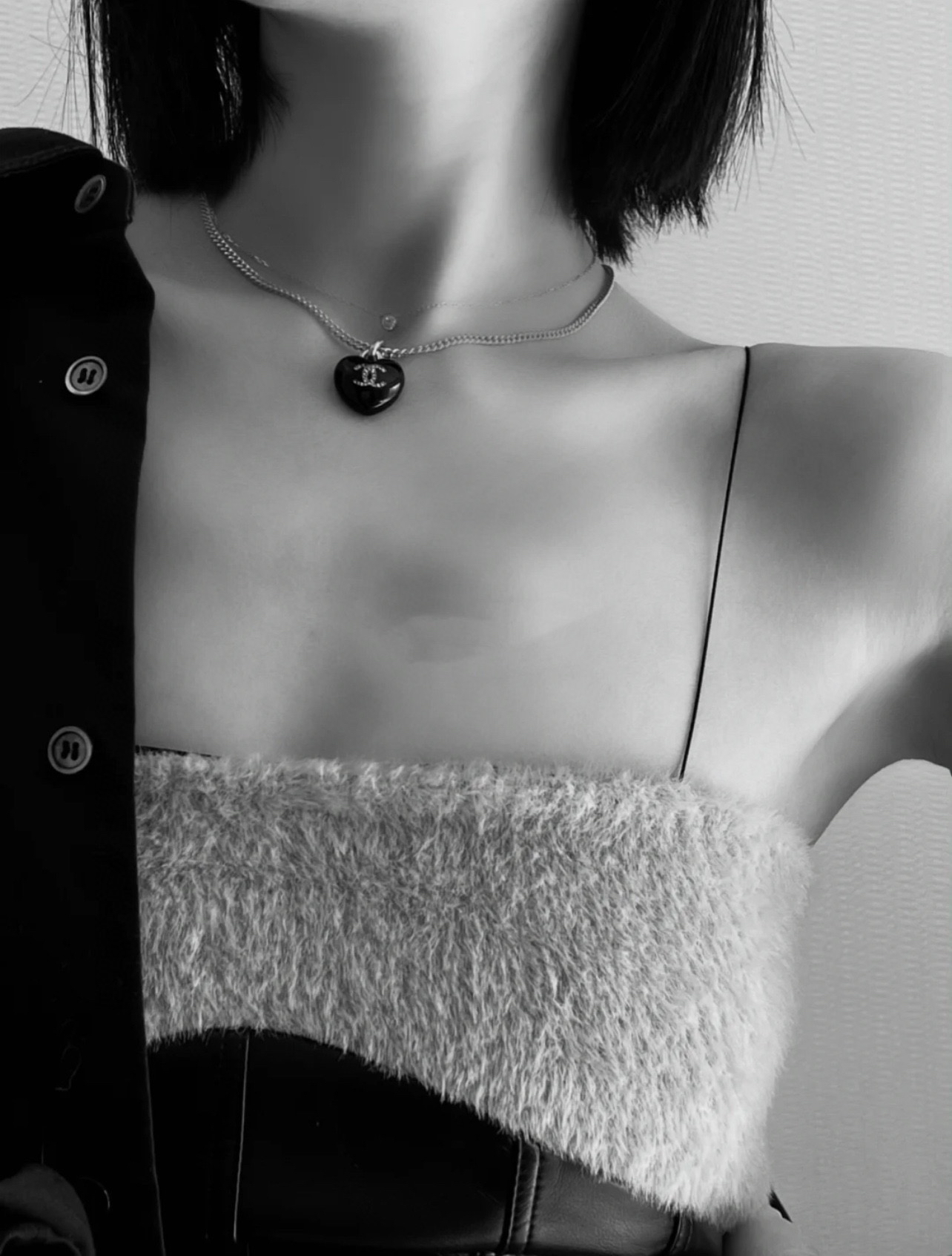 CHANEL香奈儿双c黑色桃心项链