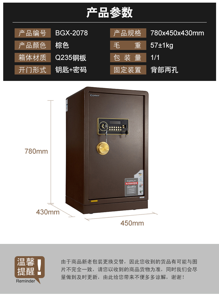 齐心电子密码保管箱BGX-2078 58Kg