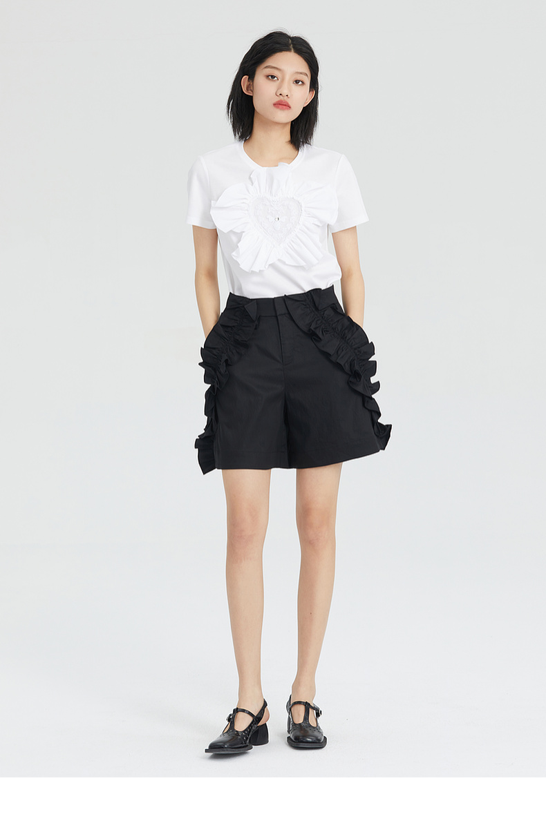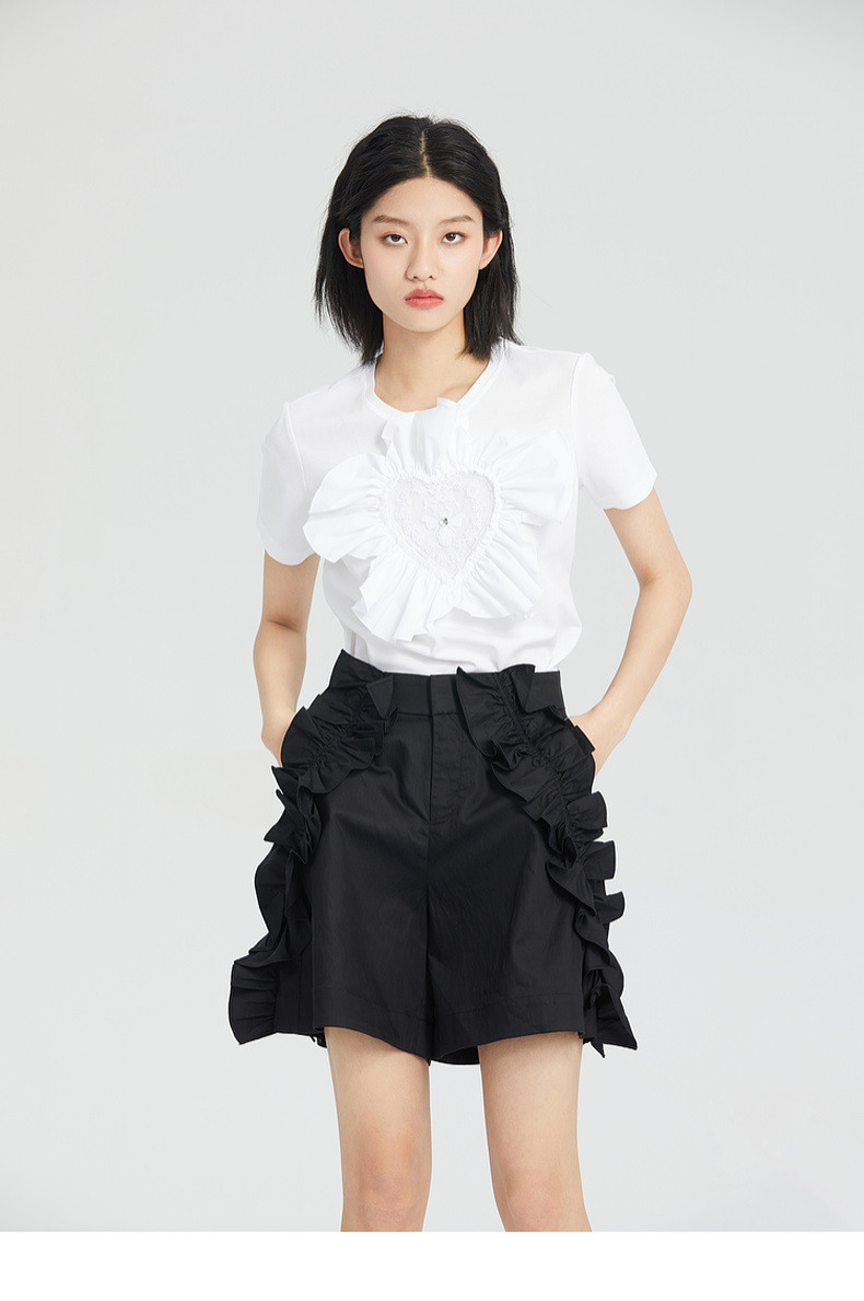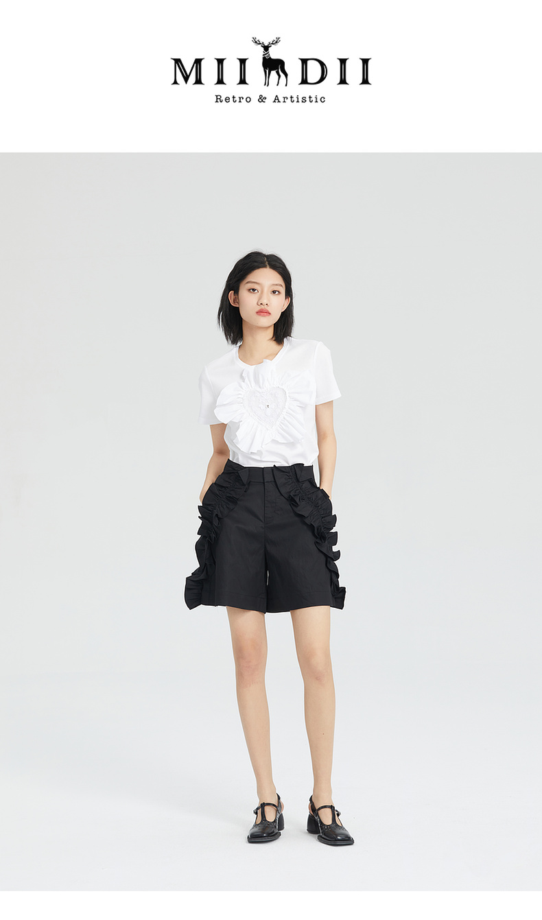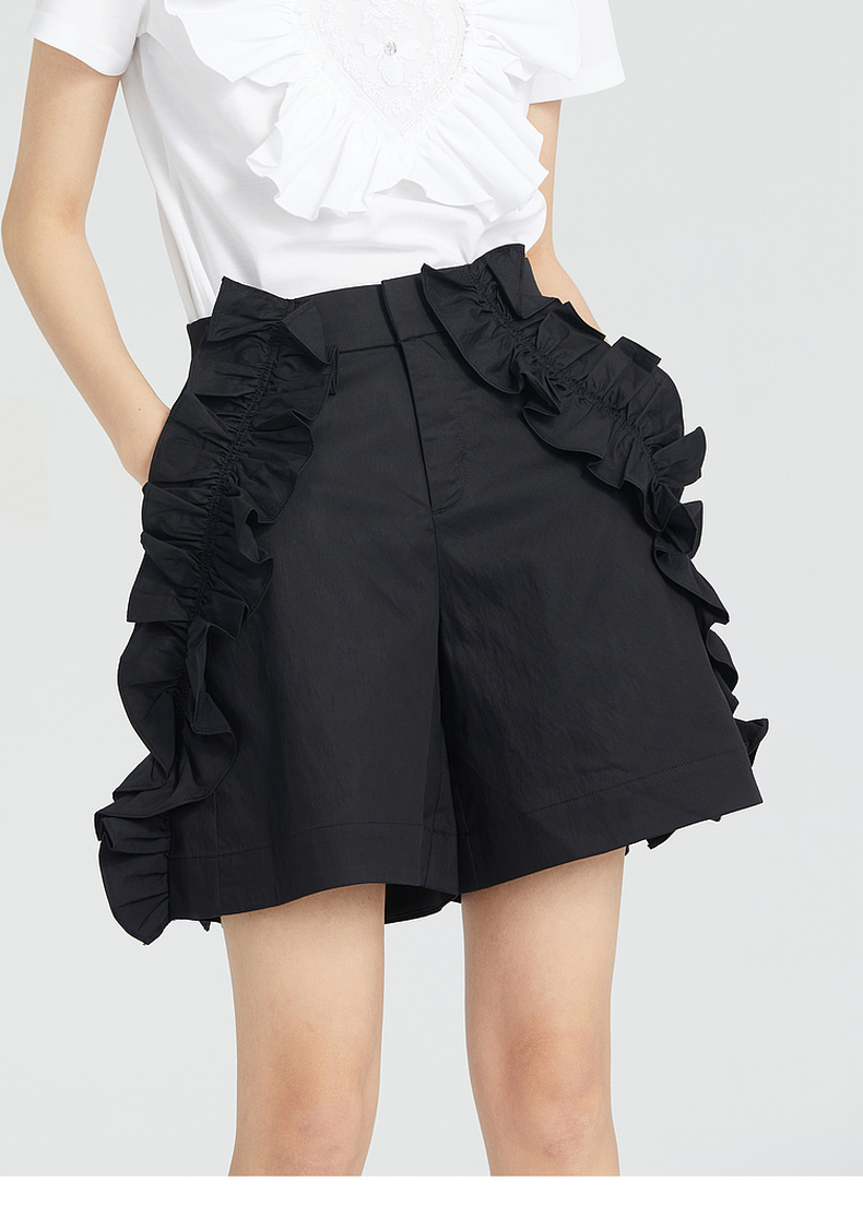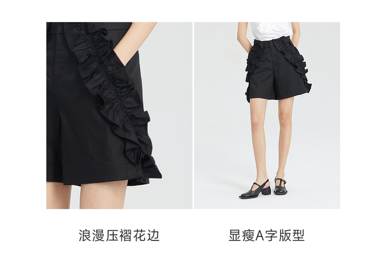 谜底短裤女2023年夏季新款复古优雅荷叶边A字型宽松短裤235MK6032