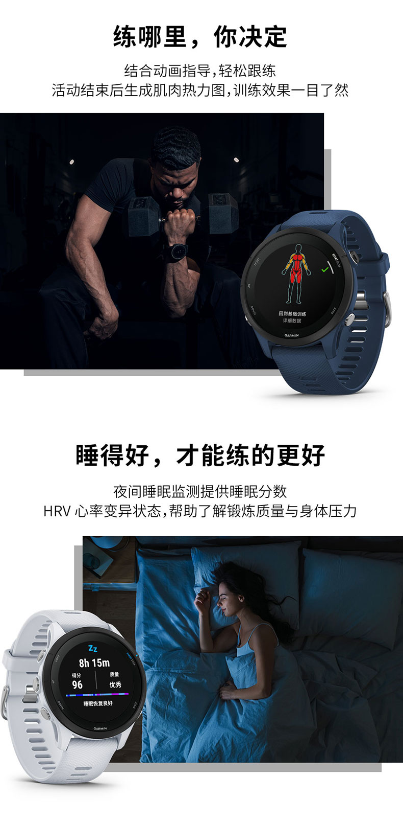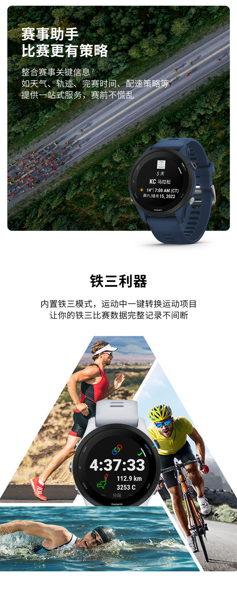 Garmin佳明Forerunner255S跑步心率血氧马拉松骑行游泳GPS运动手表吴栋陪你跑