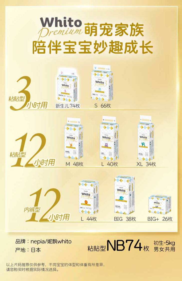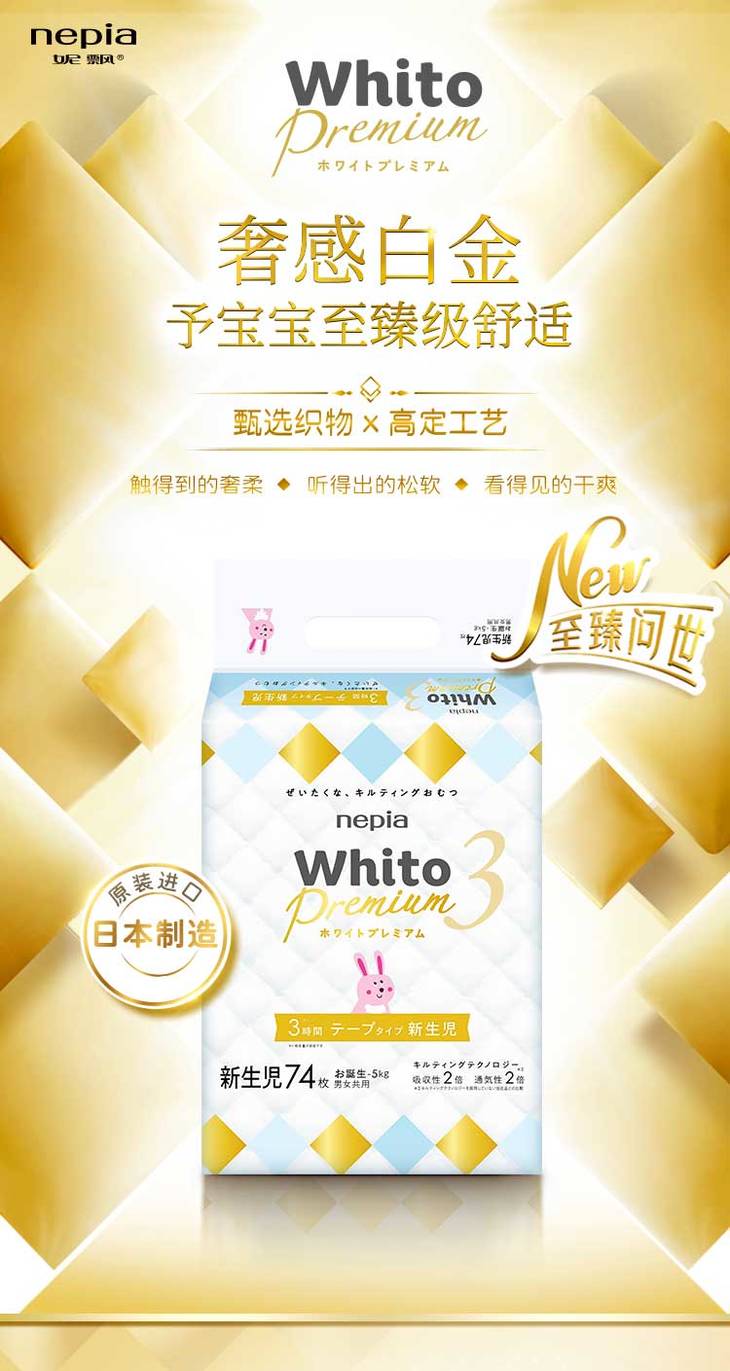 妮飘Whito Premium婴儿 纸尿裤(NB3-74)