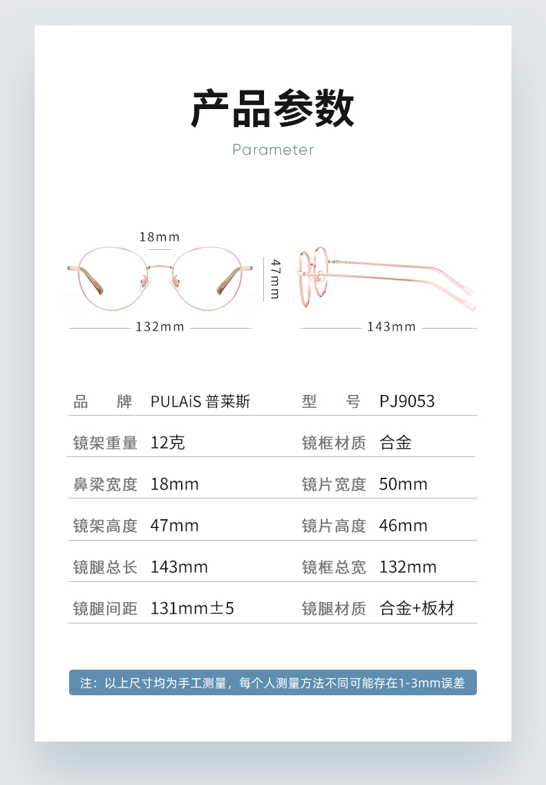 【海洋系列】普莱斯PJ9053 合金 幼圆细框 中性