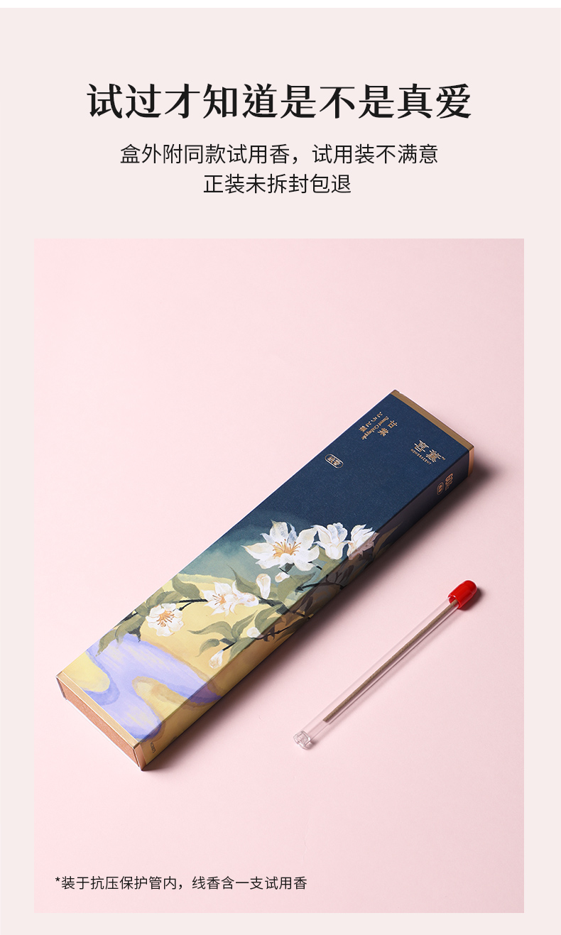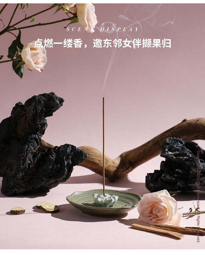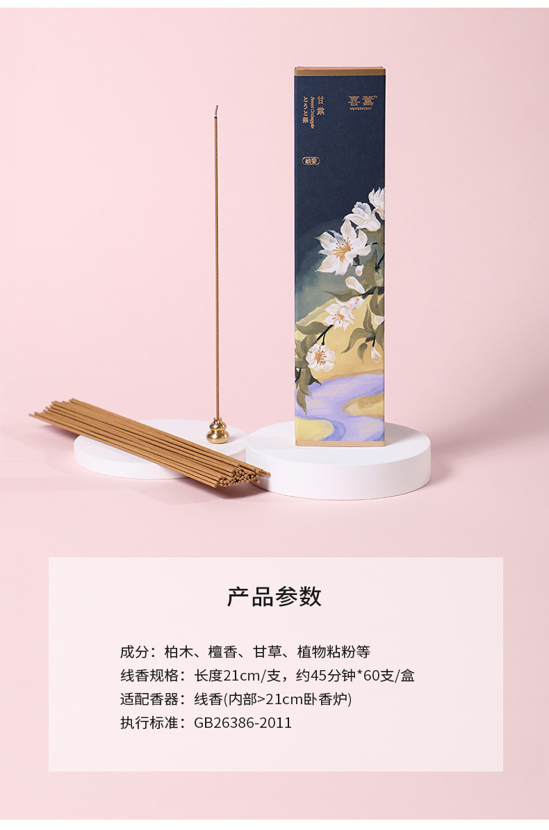 初燃,清甜的气息伴着柏木的劲气入鼻;慢慢地,辛甜的气息舒展开去;仔细品闻,甘醇之中还有一丝枣子的清脆。