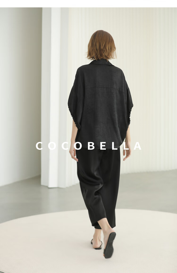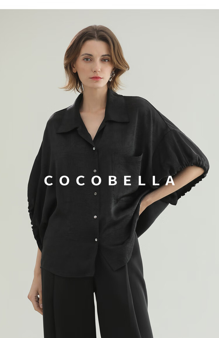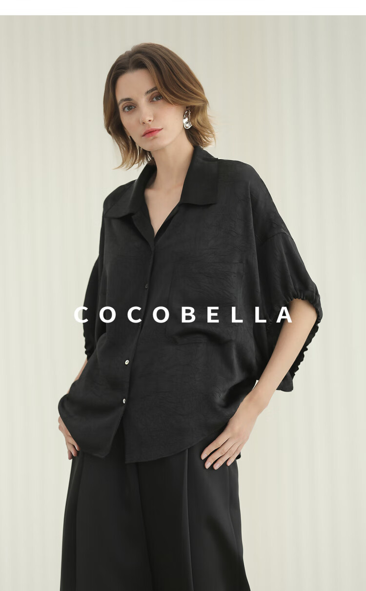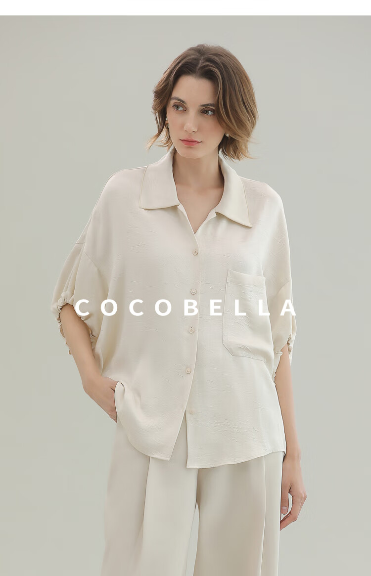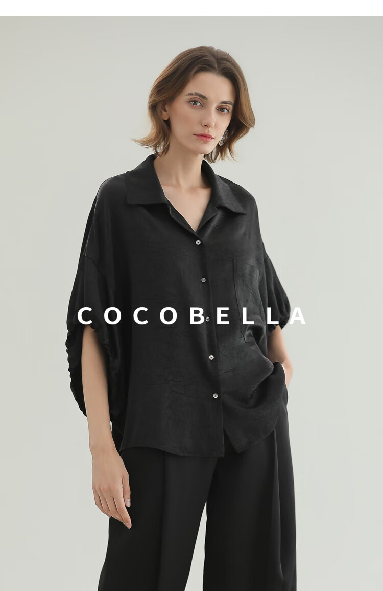 COCOBELLA新中式褶皱缎面抽绳蝙蝠袖衬衫通勤商务衬衣SR0023