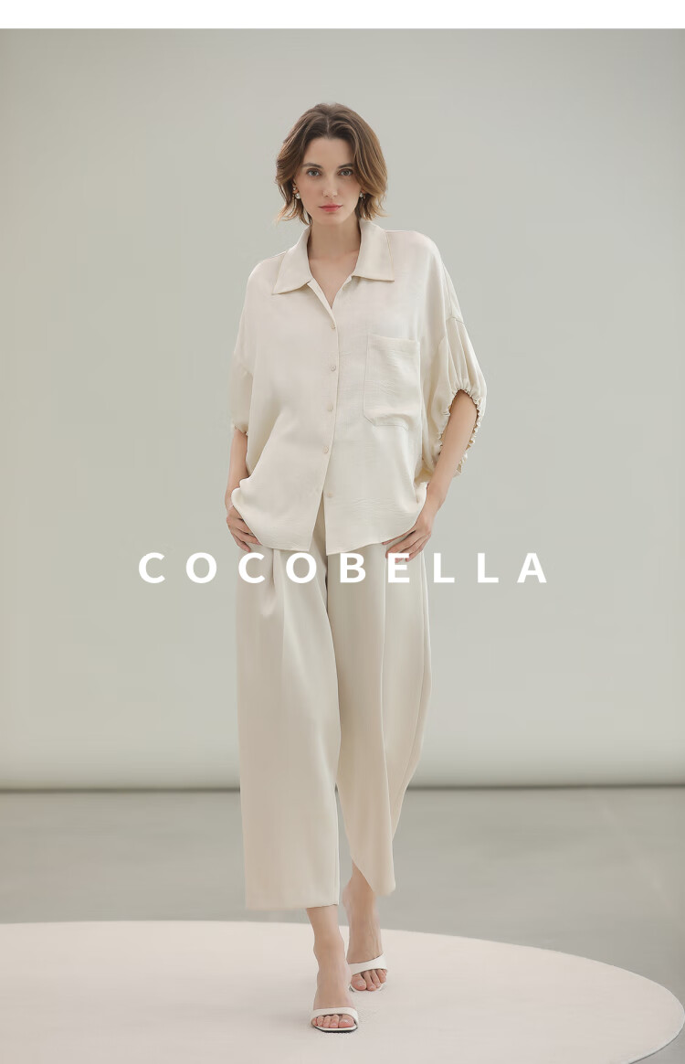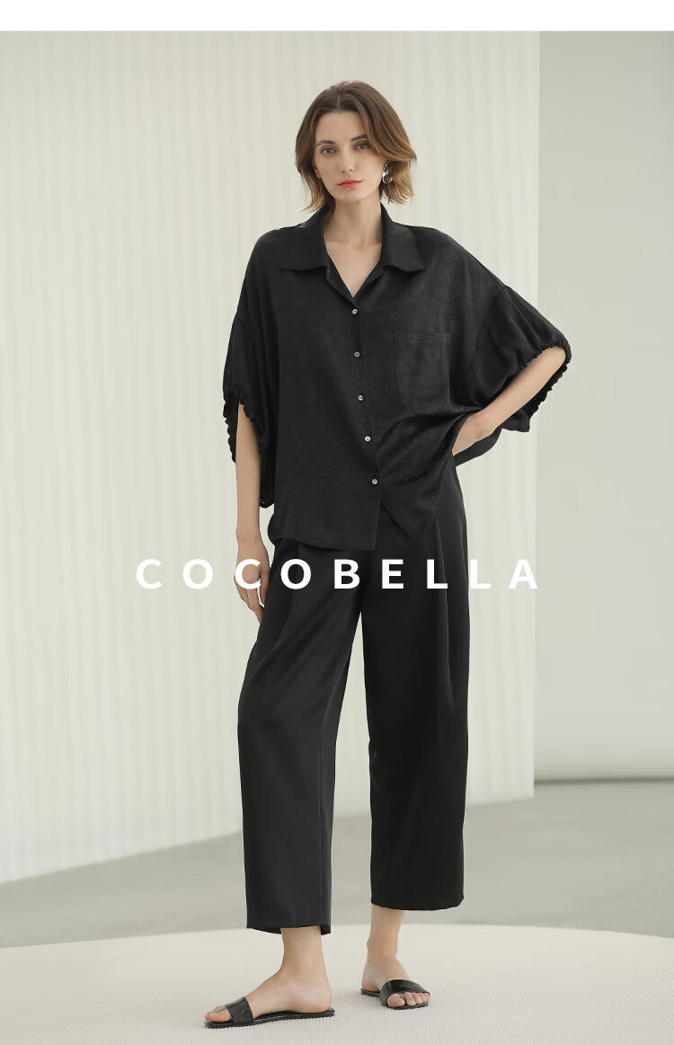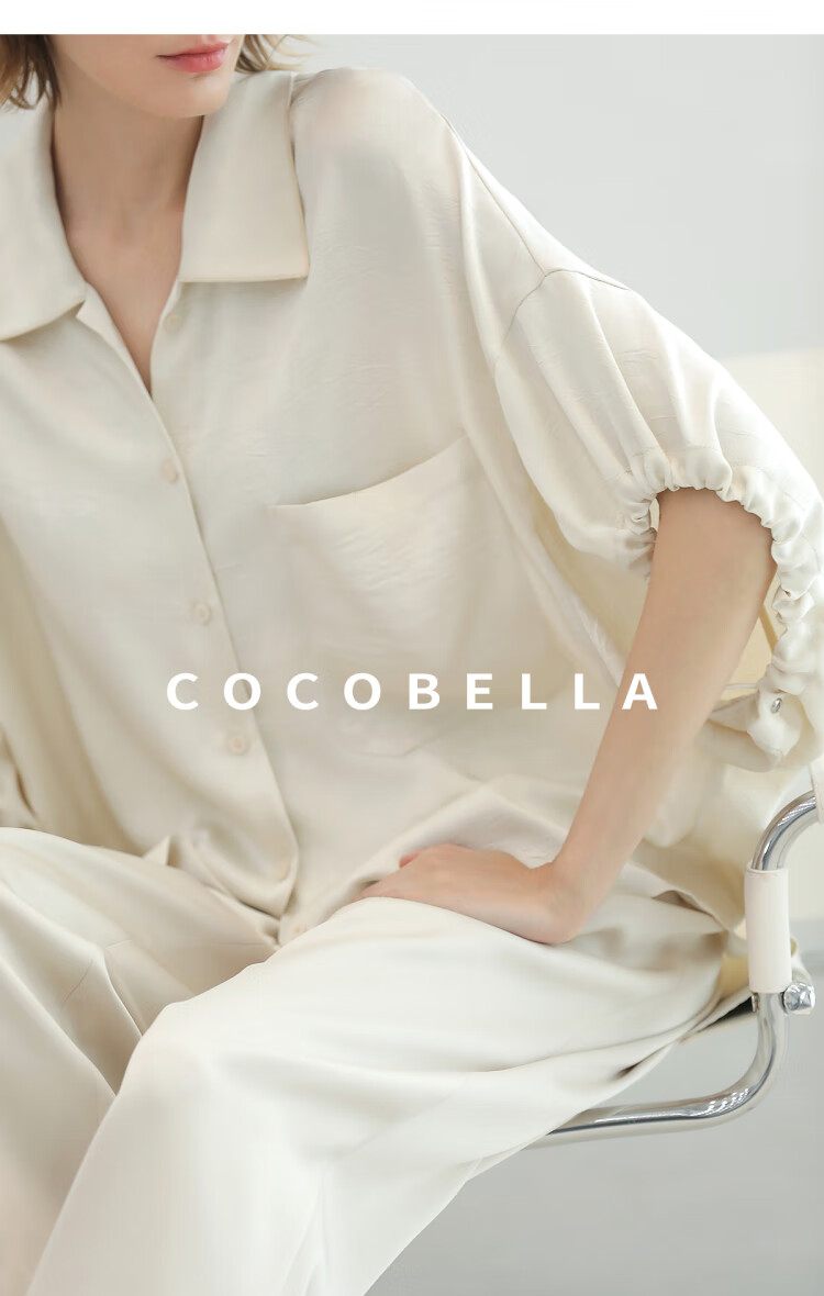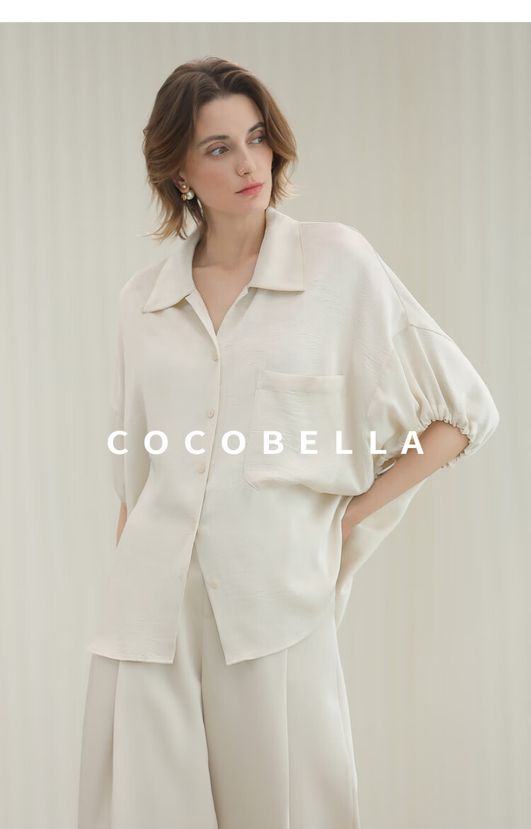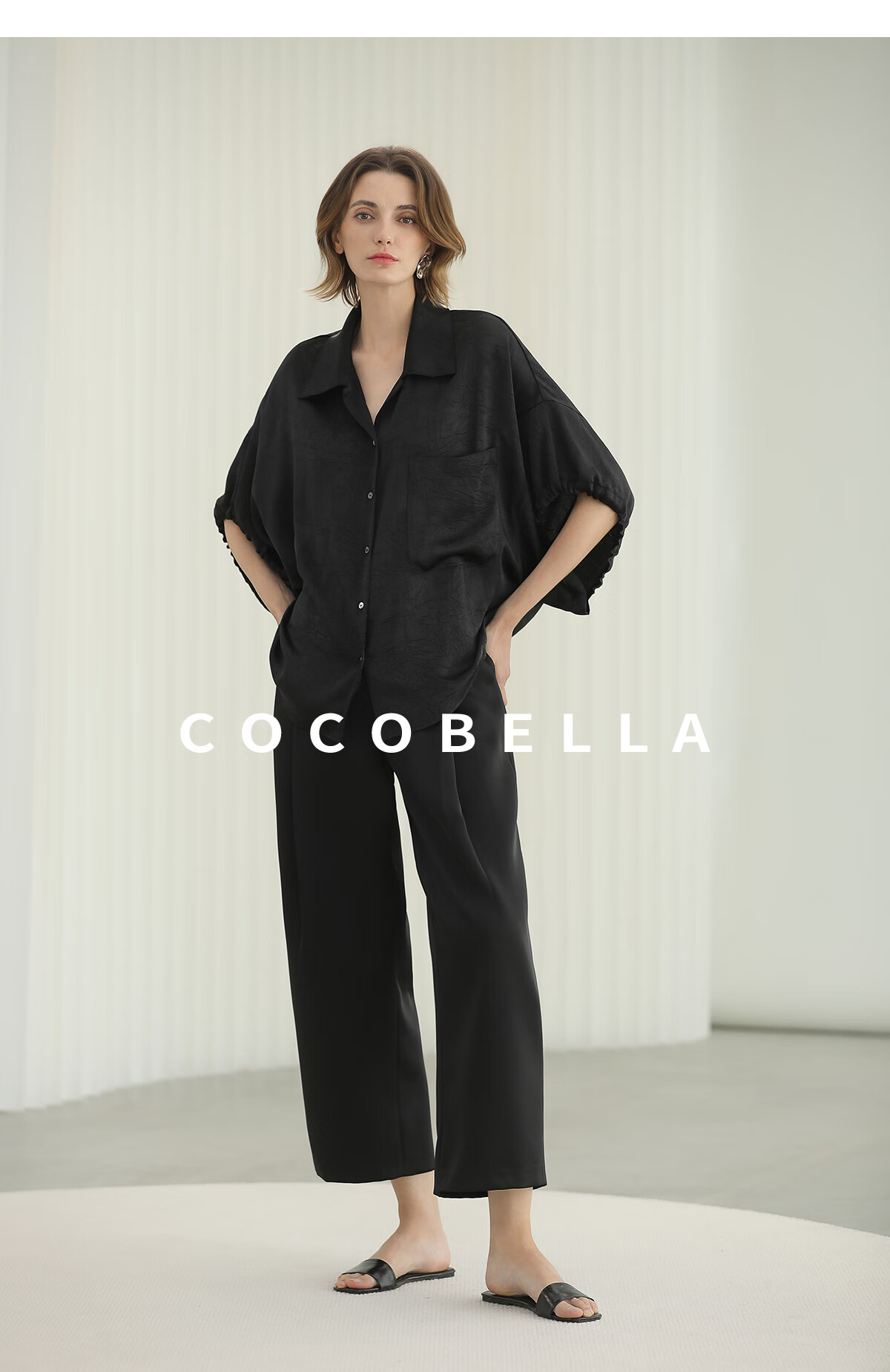 COCOBELLA新中式褶皱缎面抽绳蝙蝠袖衬衫通勤商务衬衣SR0023