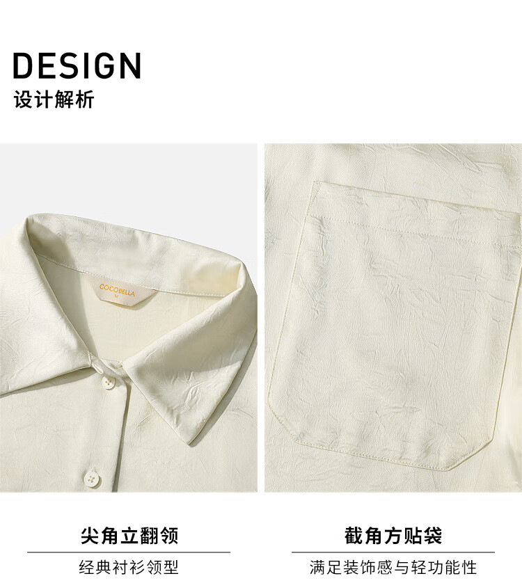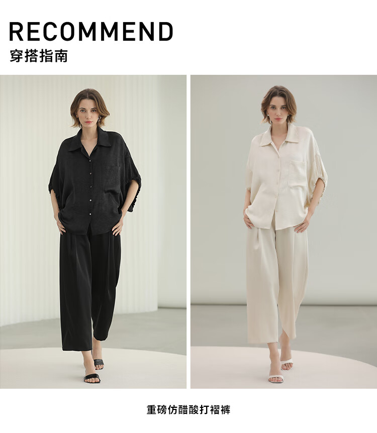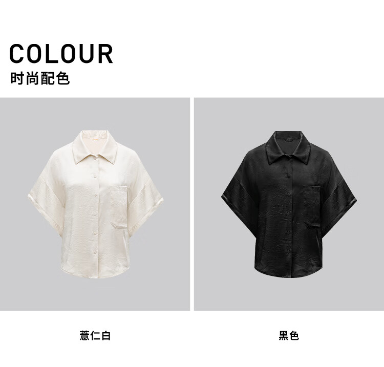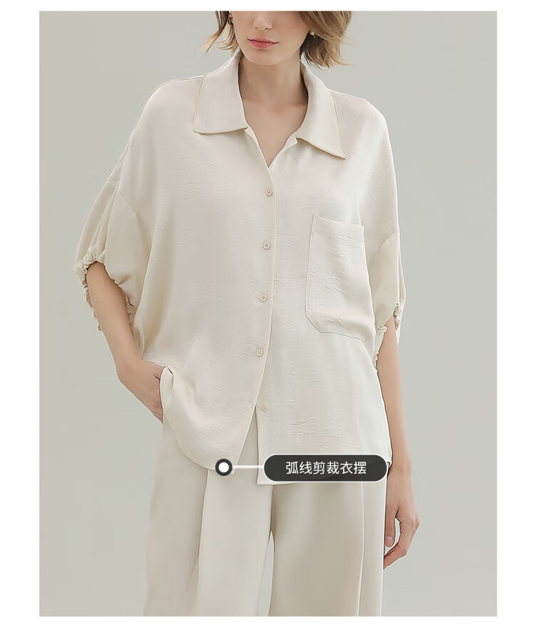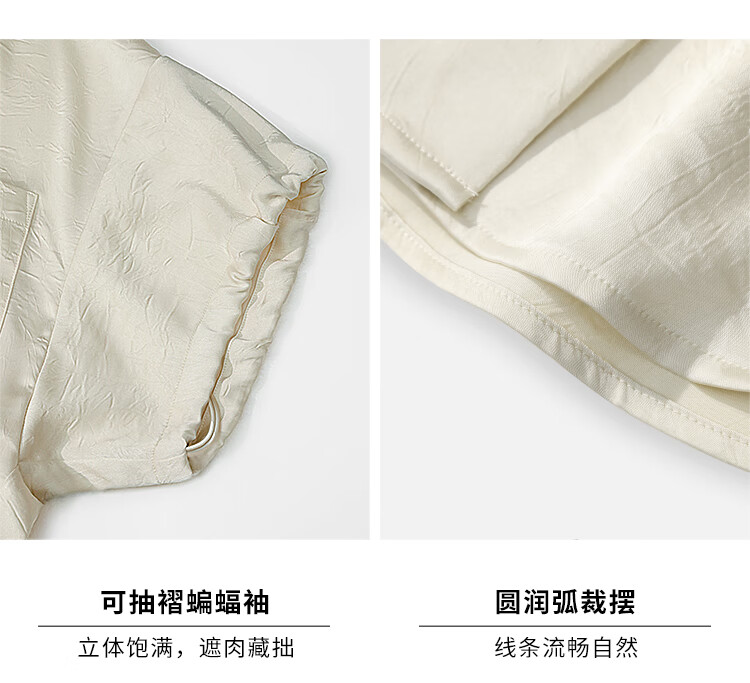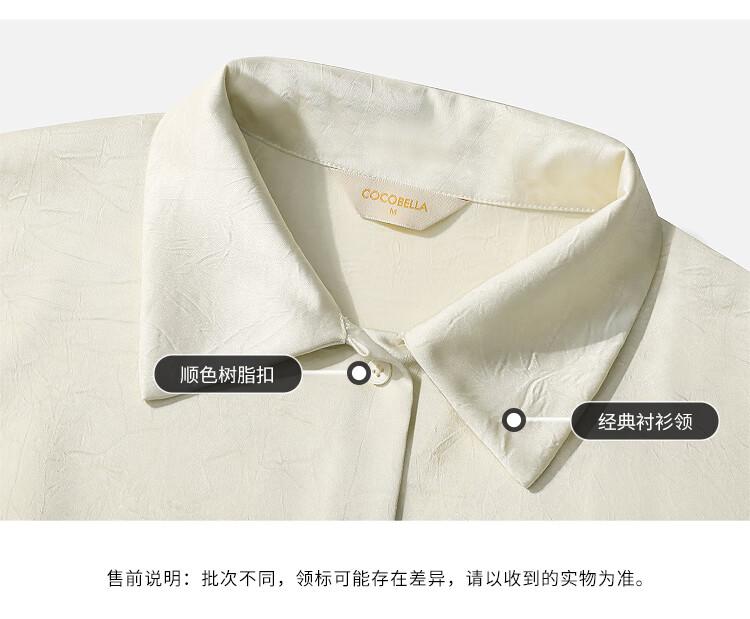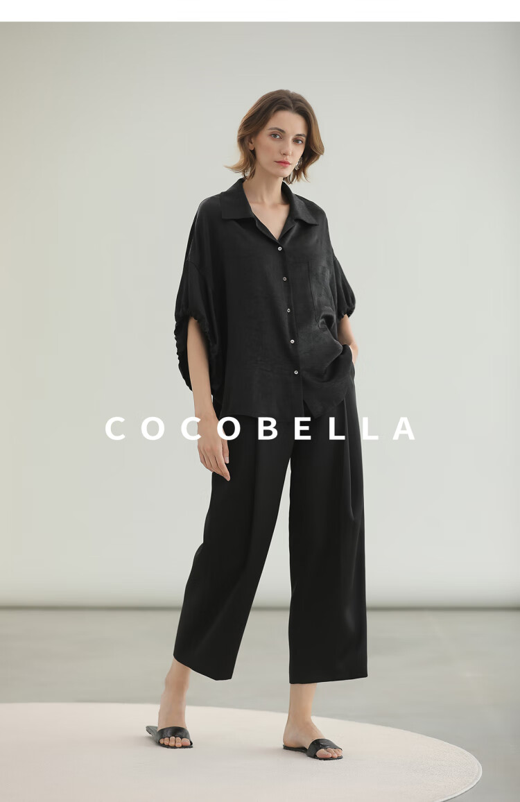 COCOBELLA新中式褶皱缎面抽绳蝙蝠袖衬衫通勤商务衬衣SR0023