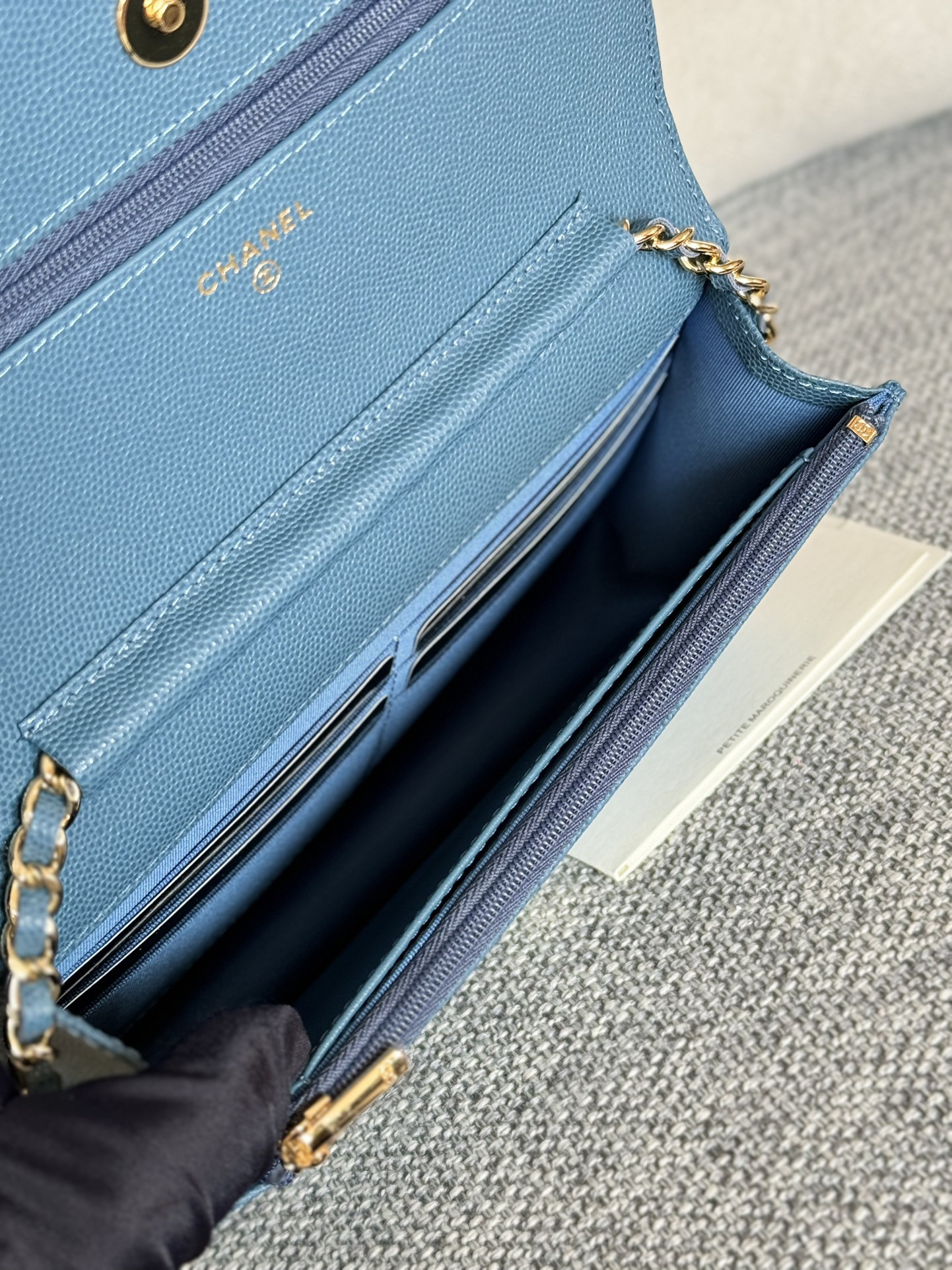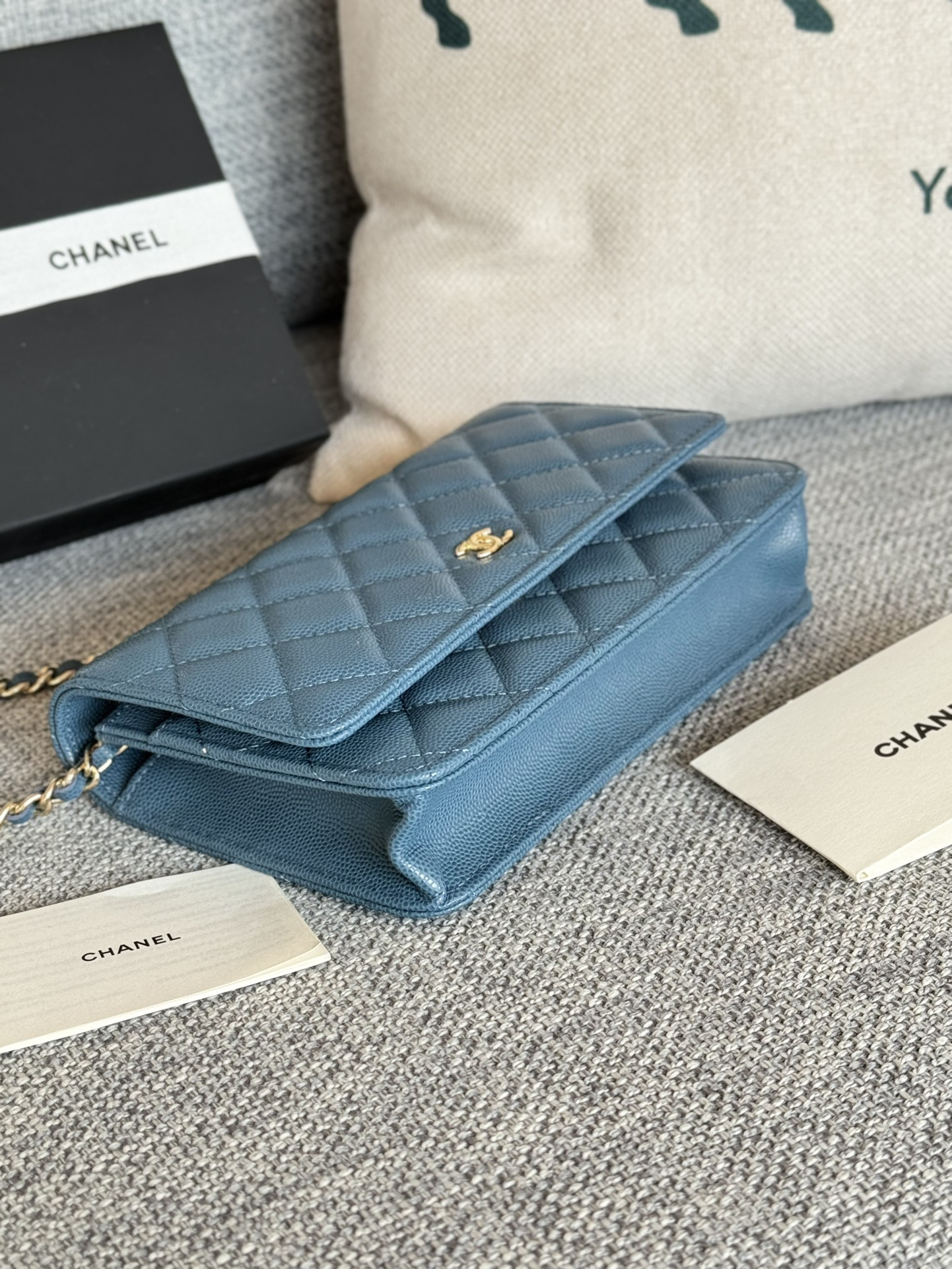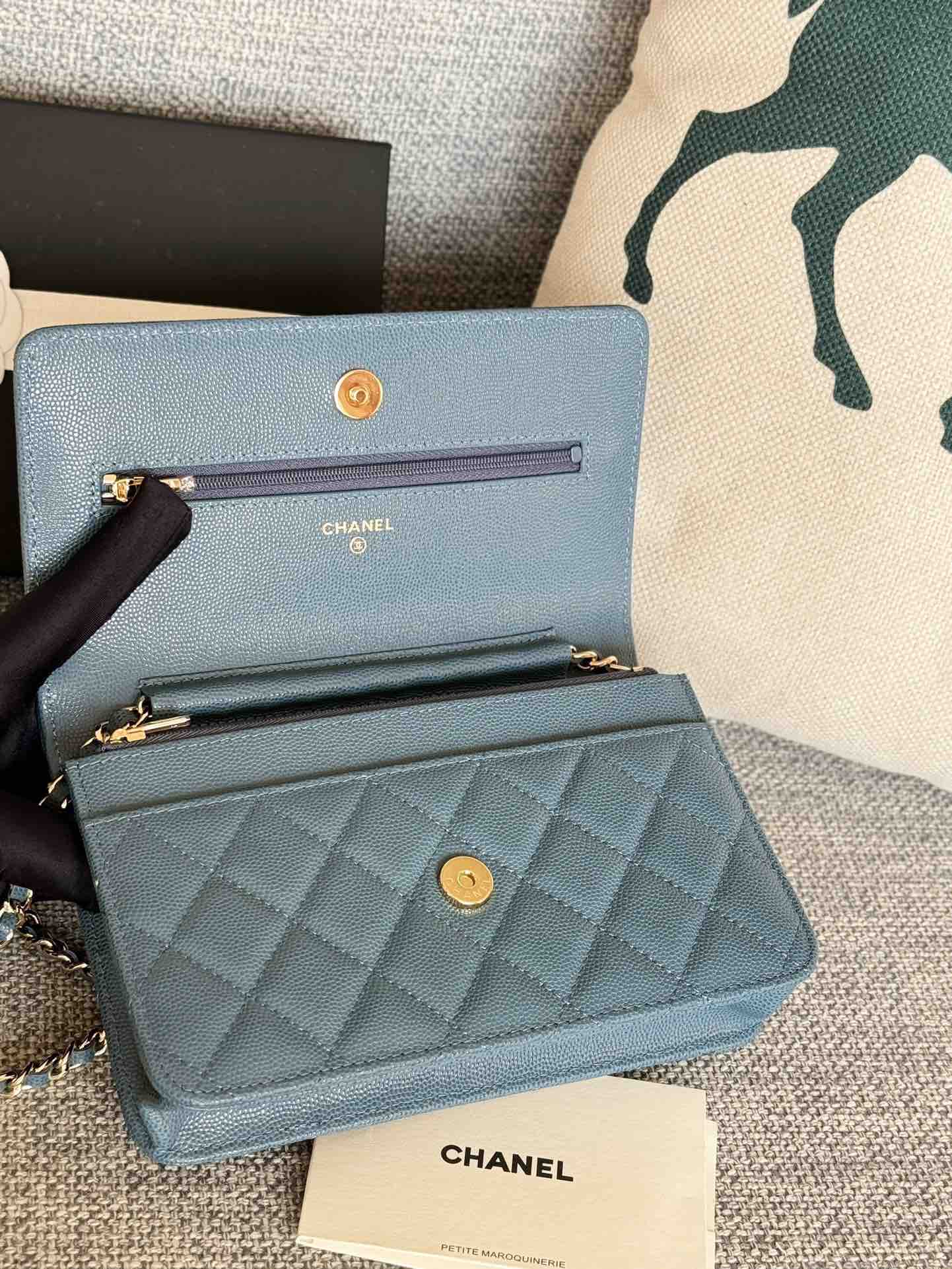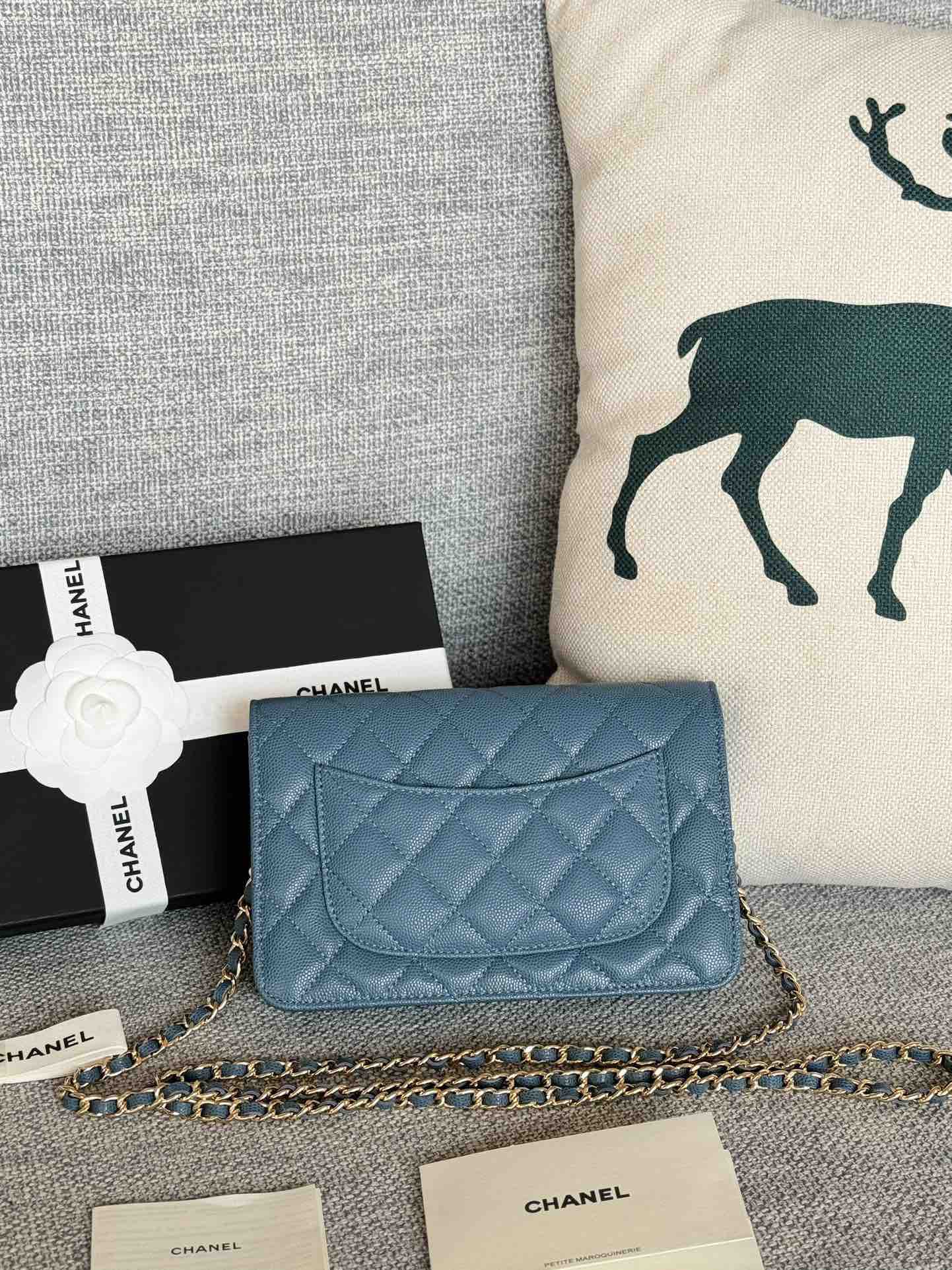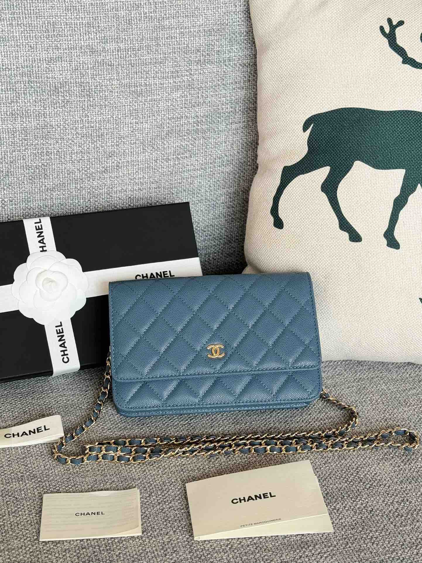 香奈儿woc链条包🉐️牛皮-蓝色金扣(⚠️细球纹)