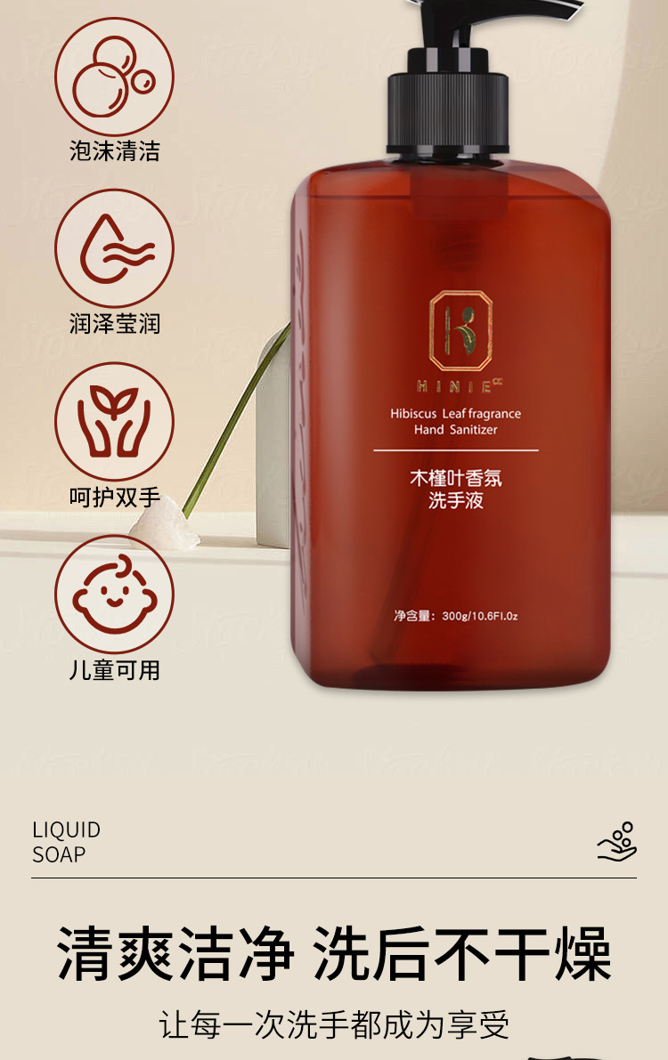 木槿叶精华洗手液大瓶酒店宾馆民宿商用泡沫丰富家用清洁300g批发