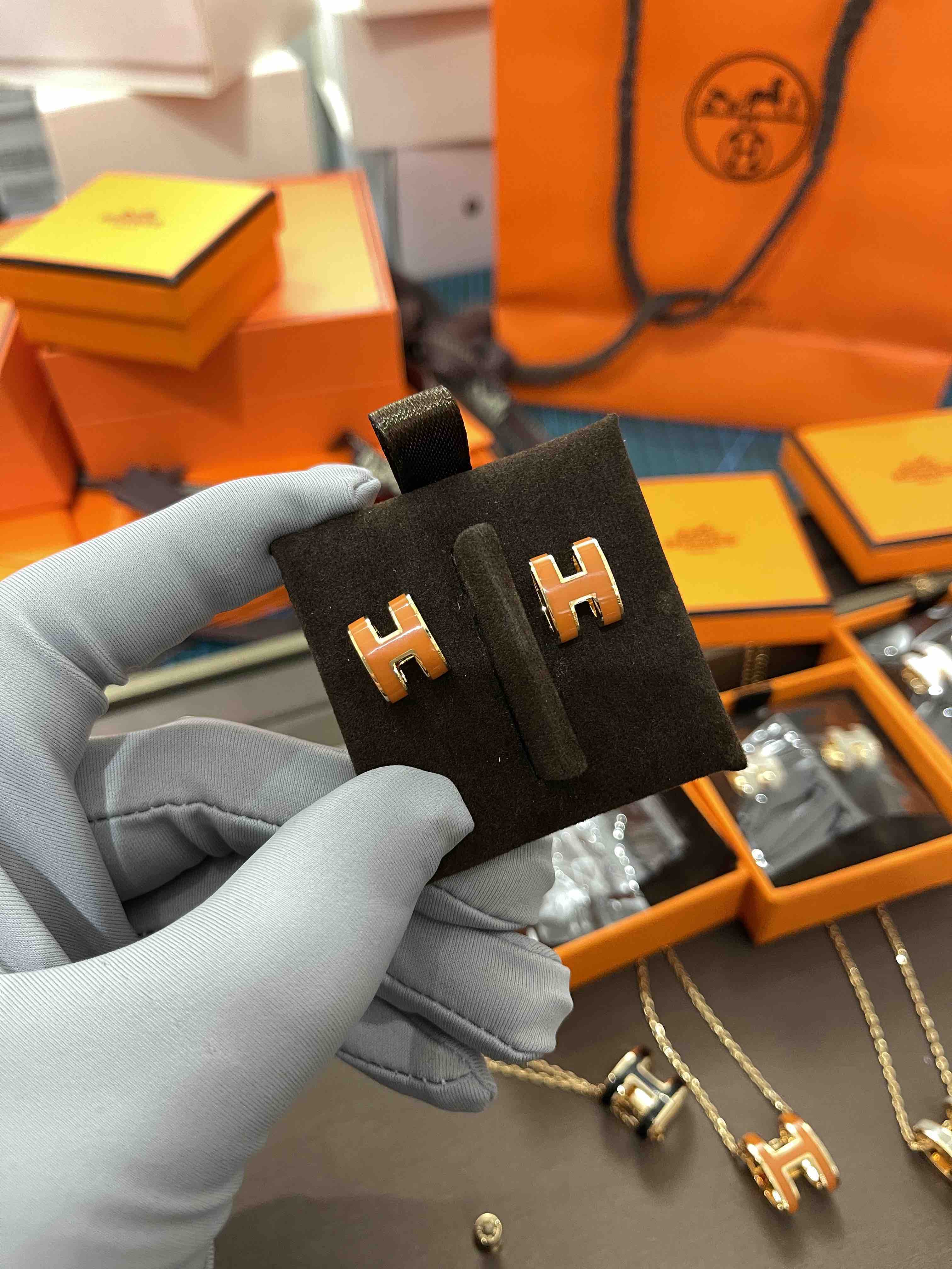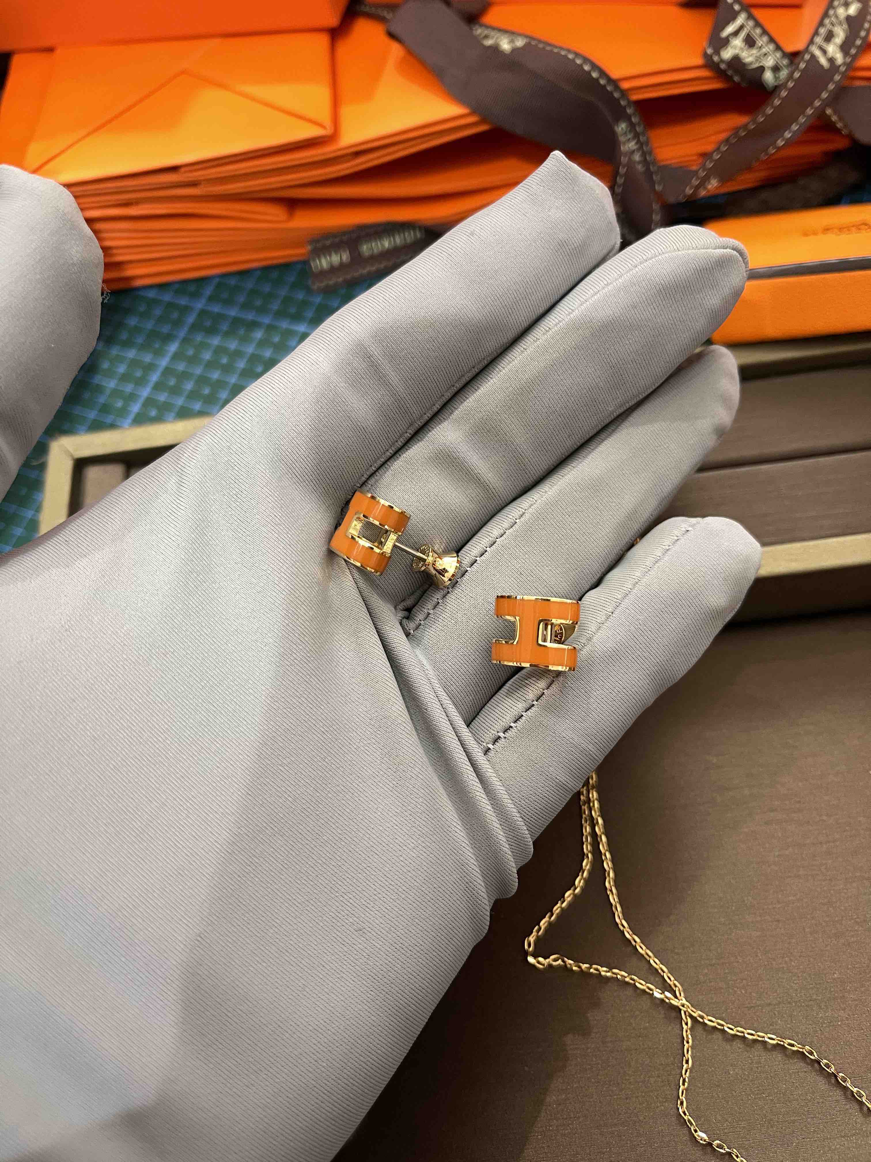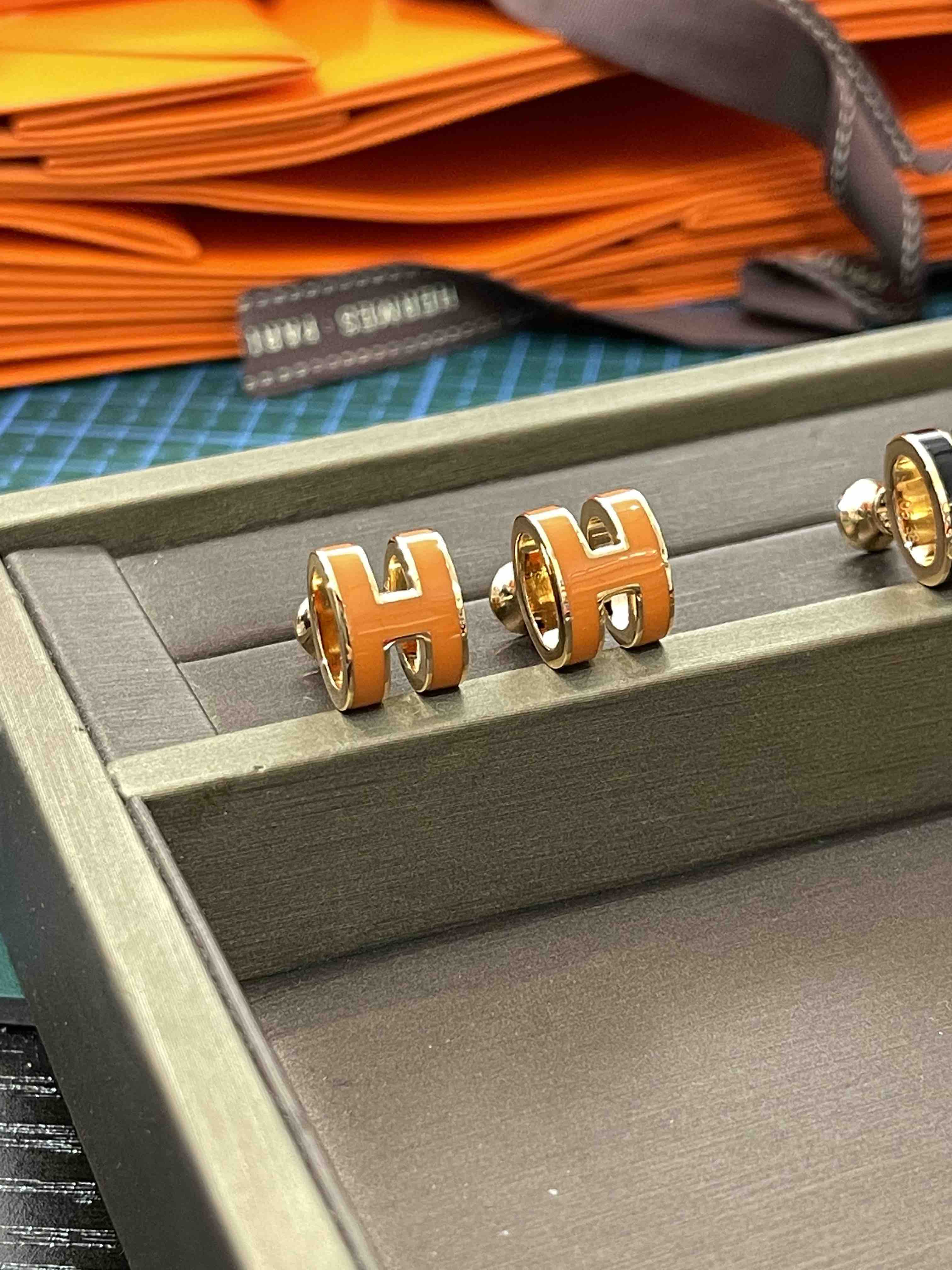 H耳钉,橙色实拍,高品质看得见!
