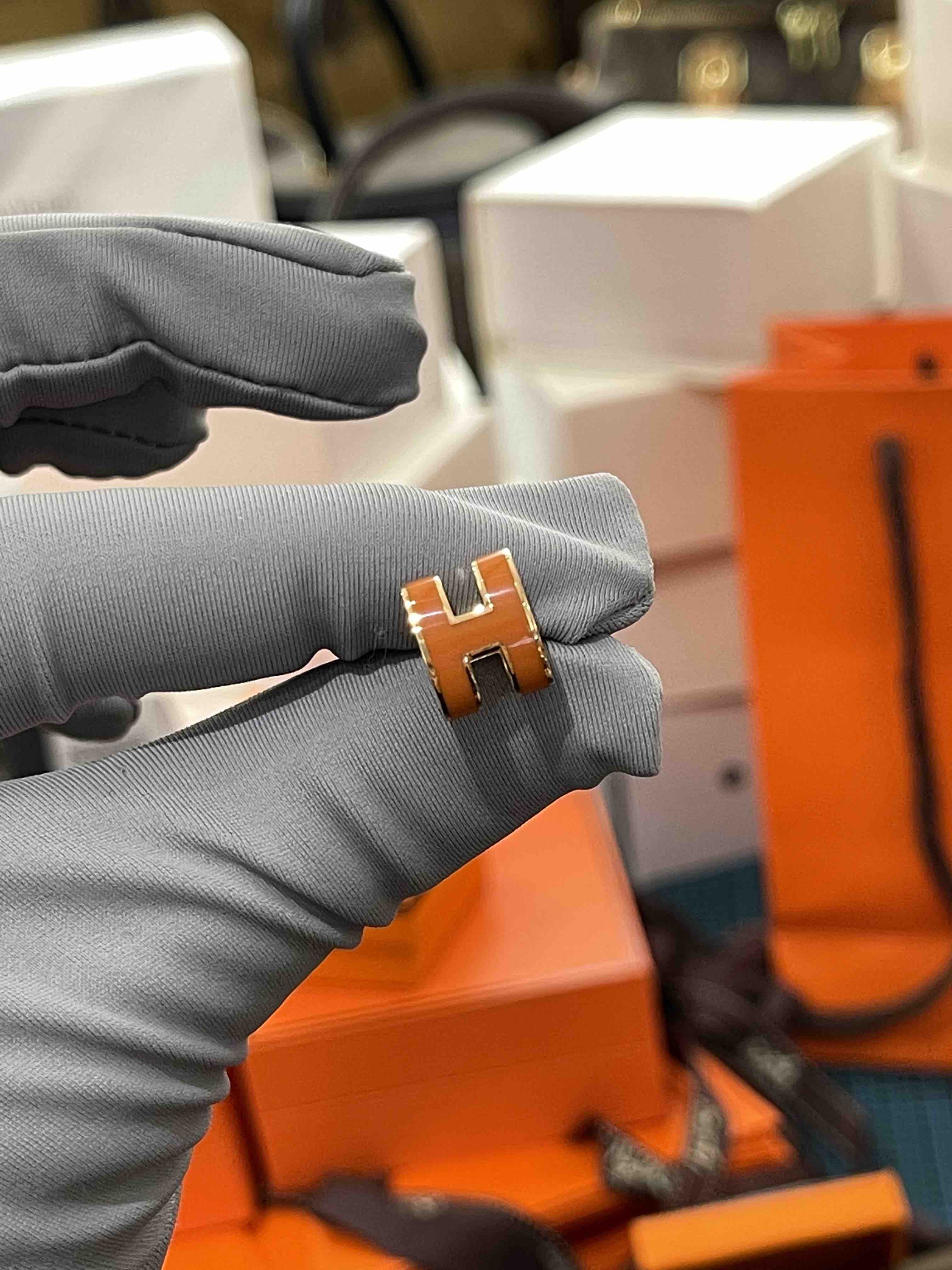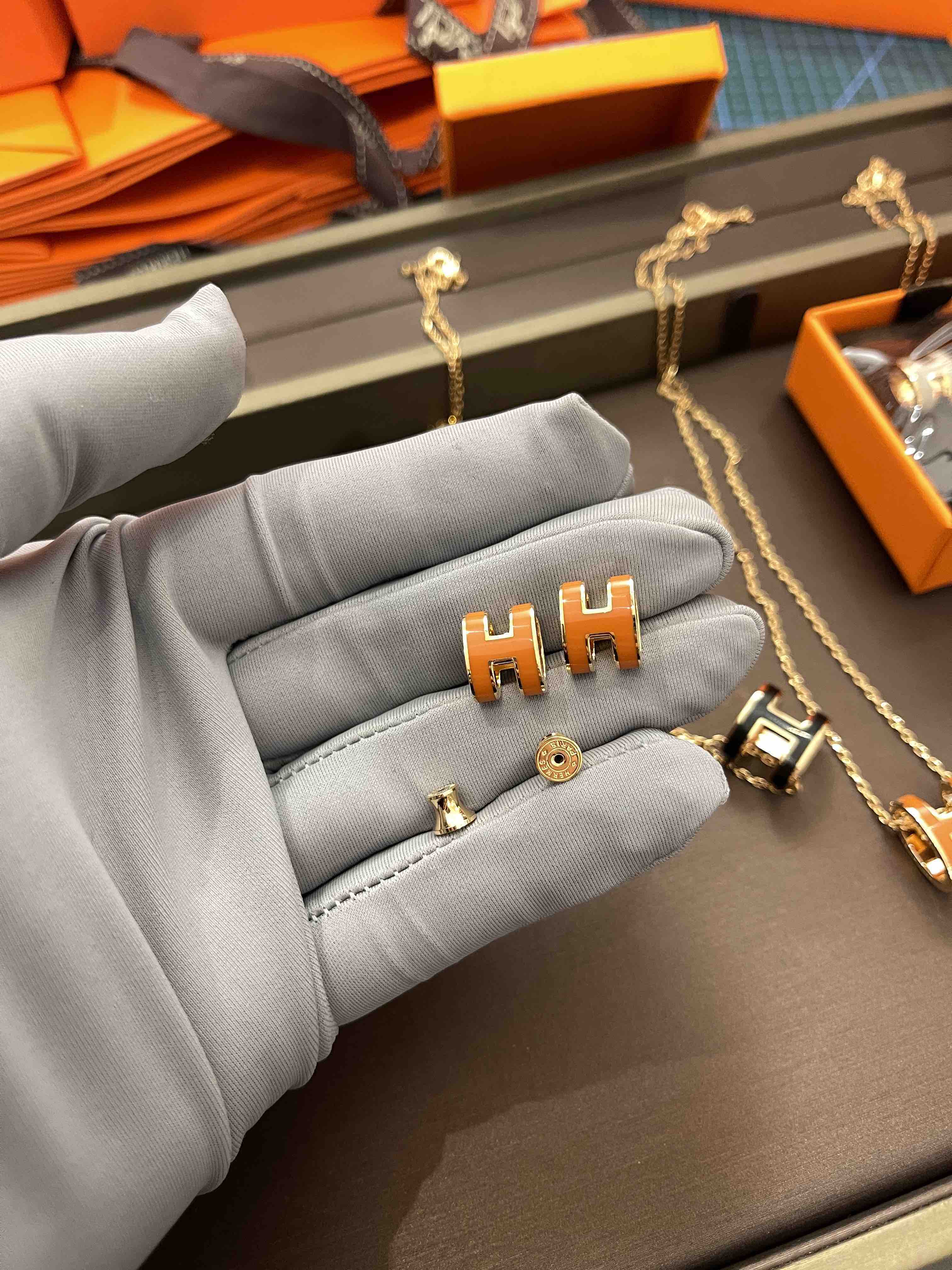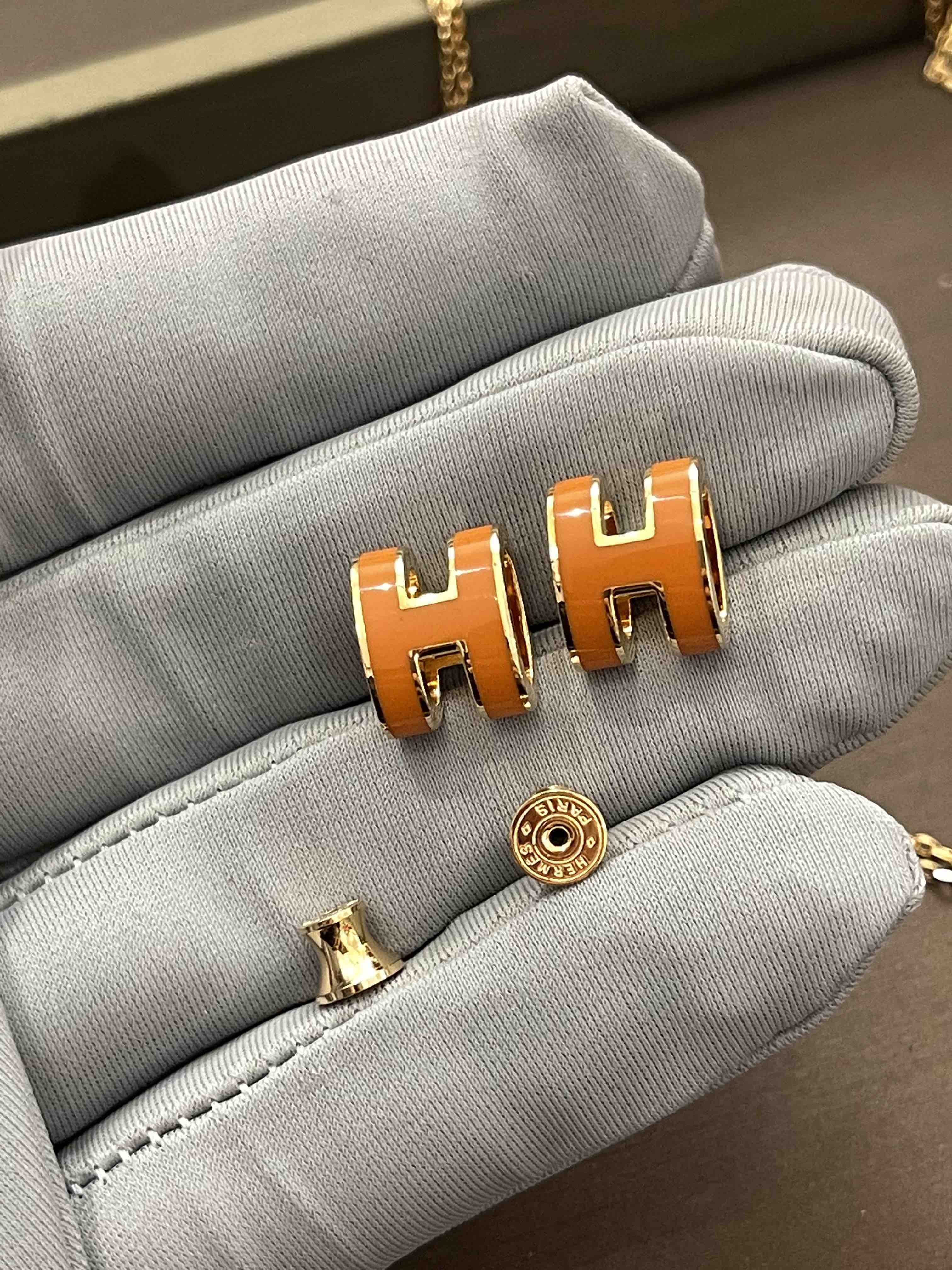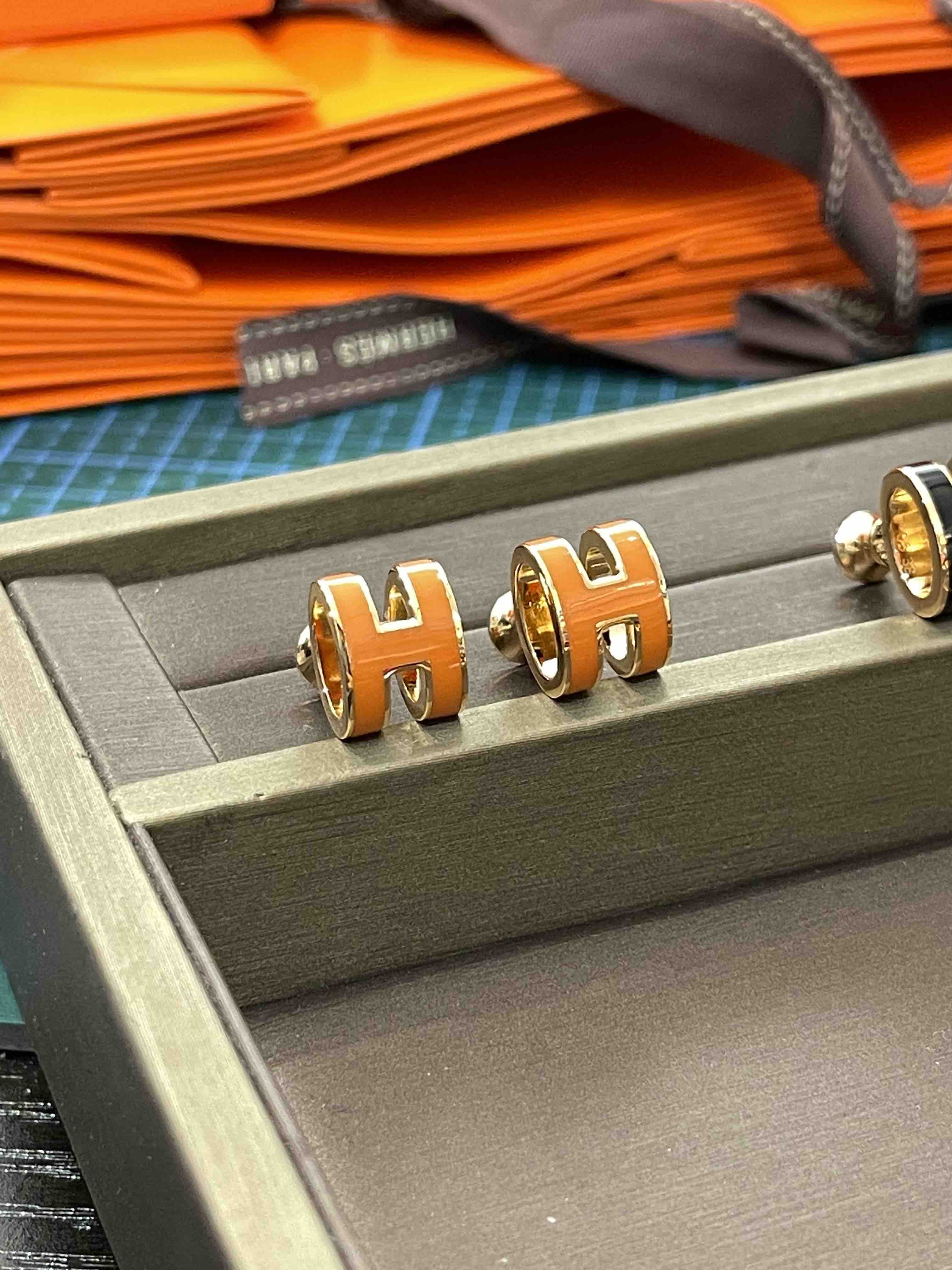 H耳钉,橙色实拍,高品质看得见!