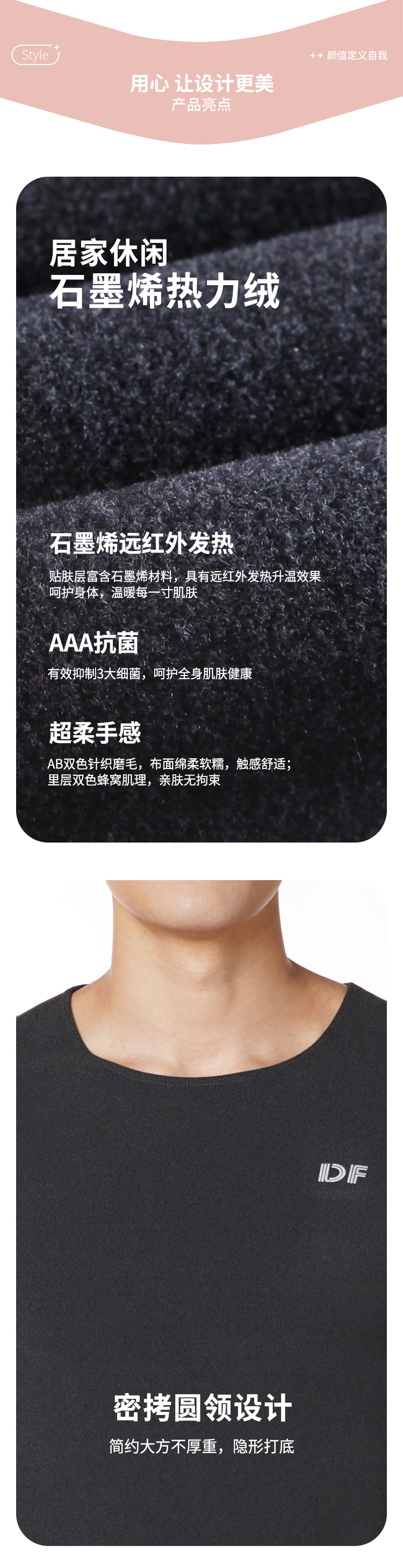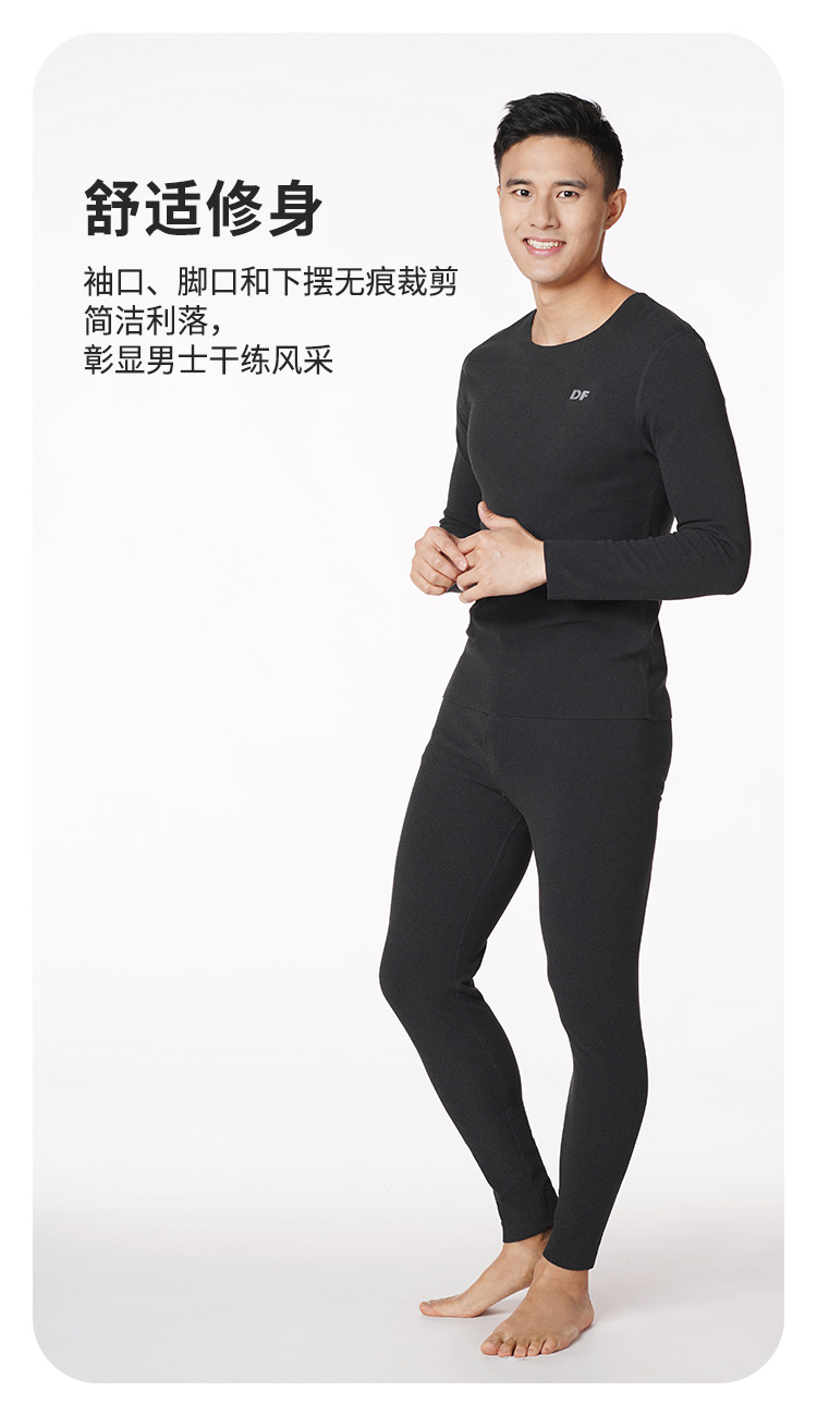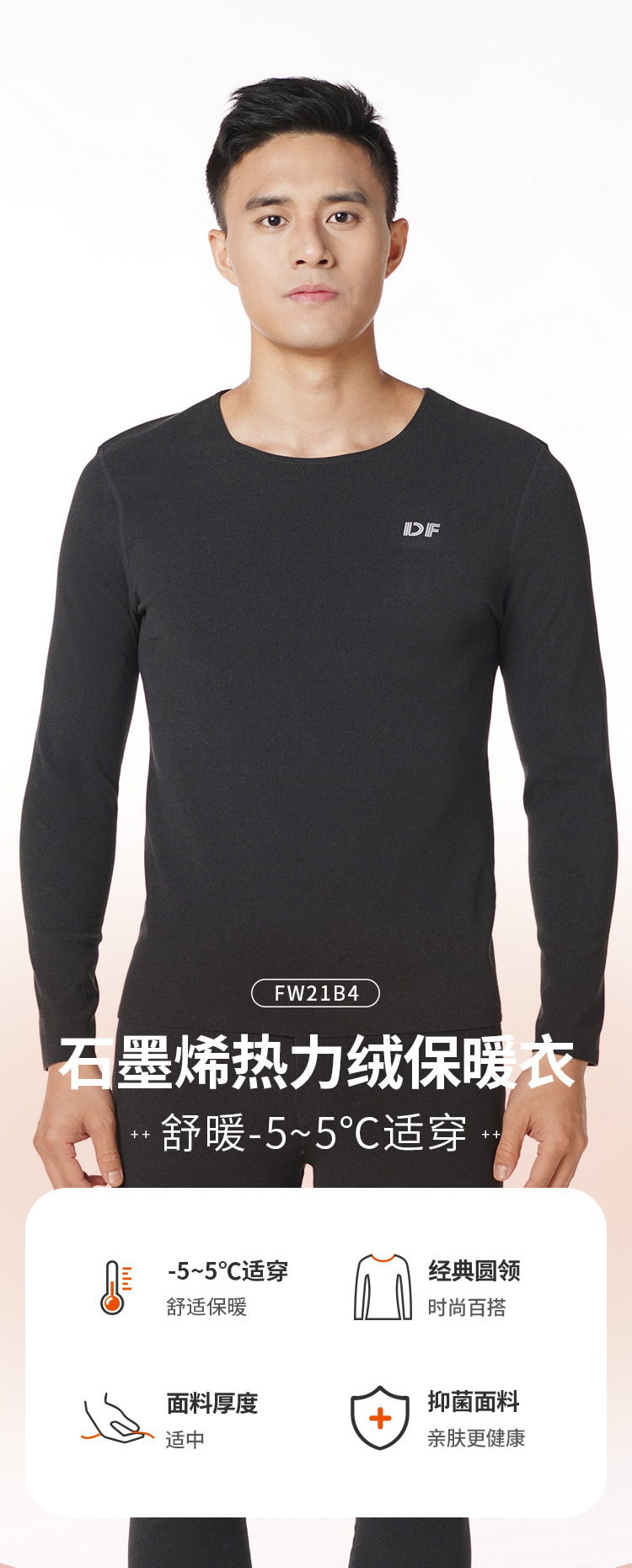 都市丽人都市锋尚舒暖负5度至5度男士发热纤维套装石墨烯热力绒中套装保暖衣FW21B4